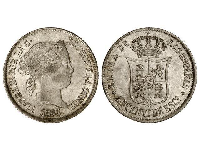 40 Céntimos de Escudo. 1866. MADRID. Cal-338. EBC.