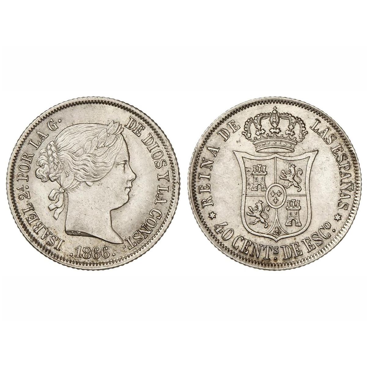 40 Céntimos de Escudo. - 1866. - MADRID. - Cal-338. MBC+. - -