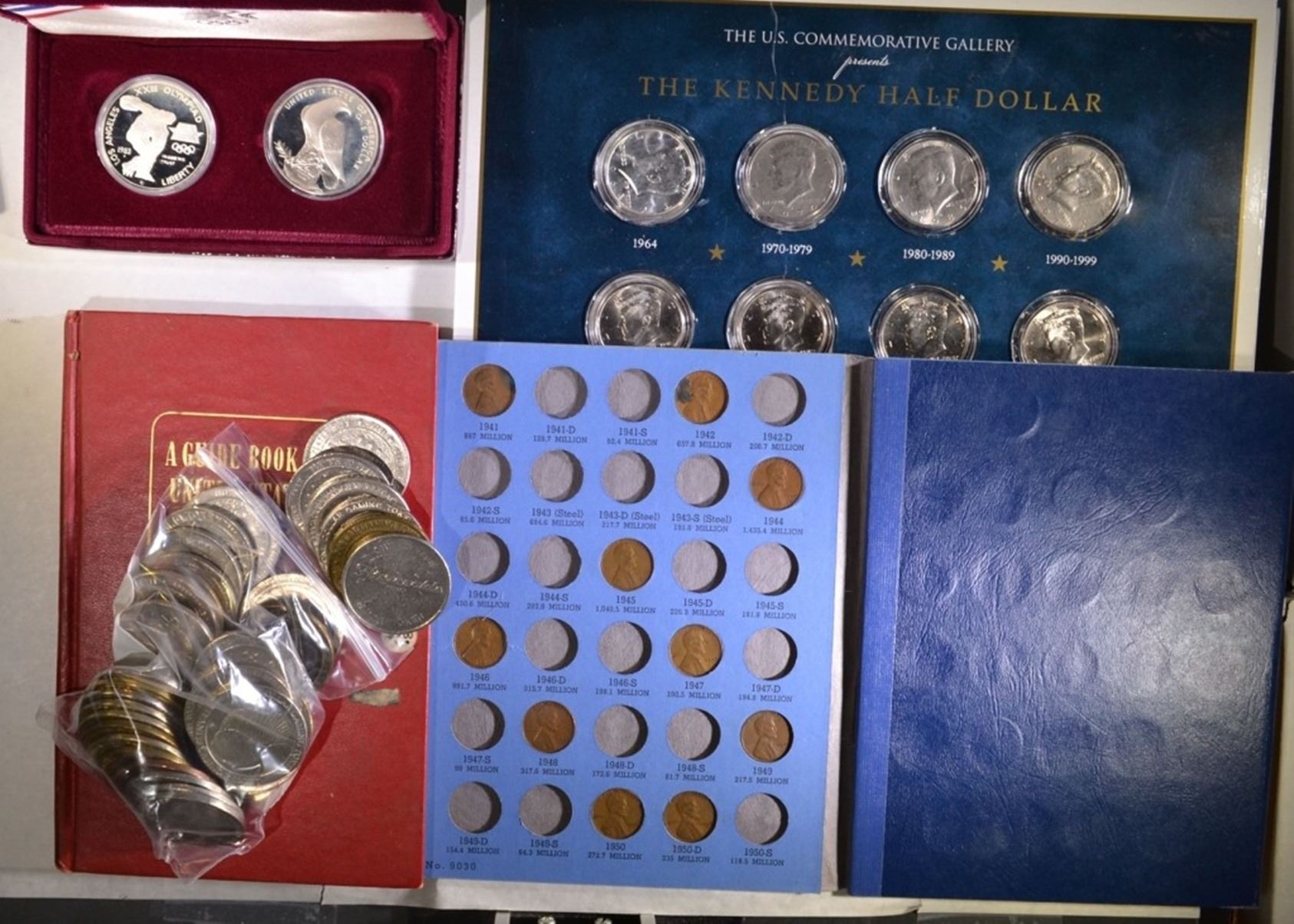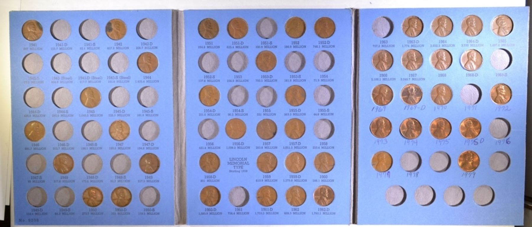 PARTIAL LINCOLN CENT SET; RED BOOK 1975; 1984 OLYMPIC 2 COIN PROOF SET ESTIMATE $180. - 200.