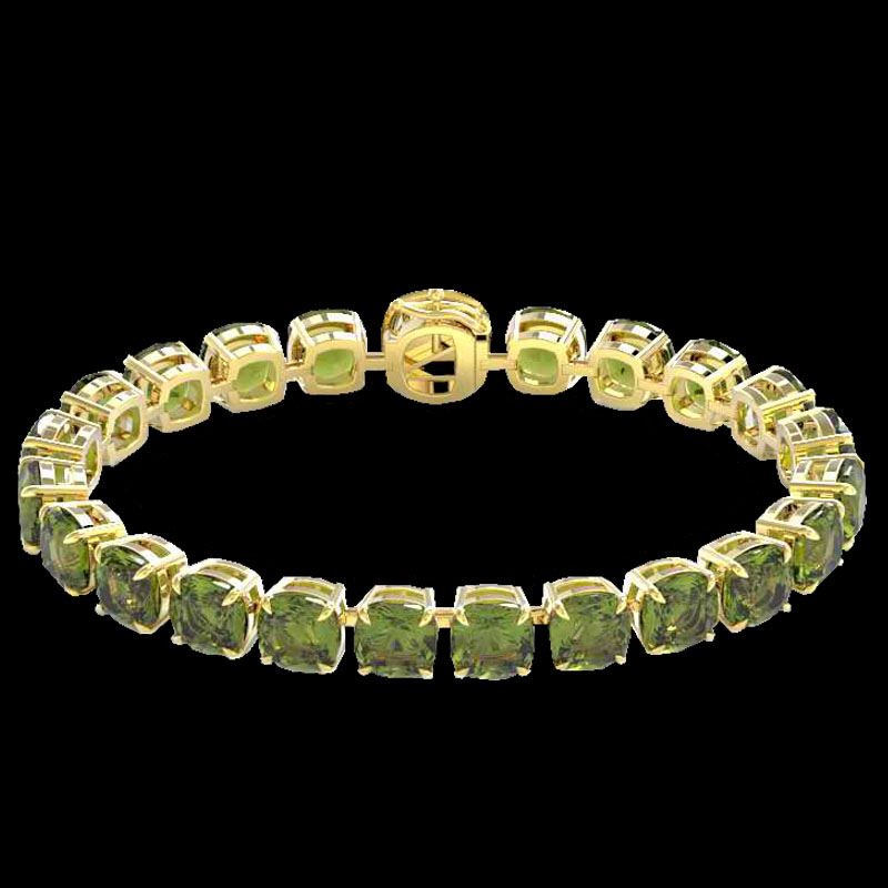 23314 - REF-404V4Y ---- 40 CTW Green Tourmaline & Micro VS/SI Diamond Halo Bracelet 14K Yellow Gold ---- Luxury Designer Brand Bracelet Appraised at $26,700 Certificate Number US23314 14k Yellow gold, Bracelet Size is 7 Inches, Bracelet measuring approx. 9 mm x 7 Inches, weighing in total approx. 14 grams. Made in the USA and is stamped 14k, Main stone 39.75 carat total weight containing 22 pieces of Saturated Green color with AAA quality Cushion shape cut Green Tourmaline , Stone #2 0.25 carat total weight containing 24 pieces of H-I color with VS/SI quality Round shape cut Diamond