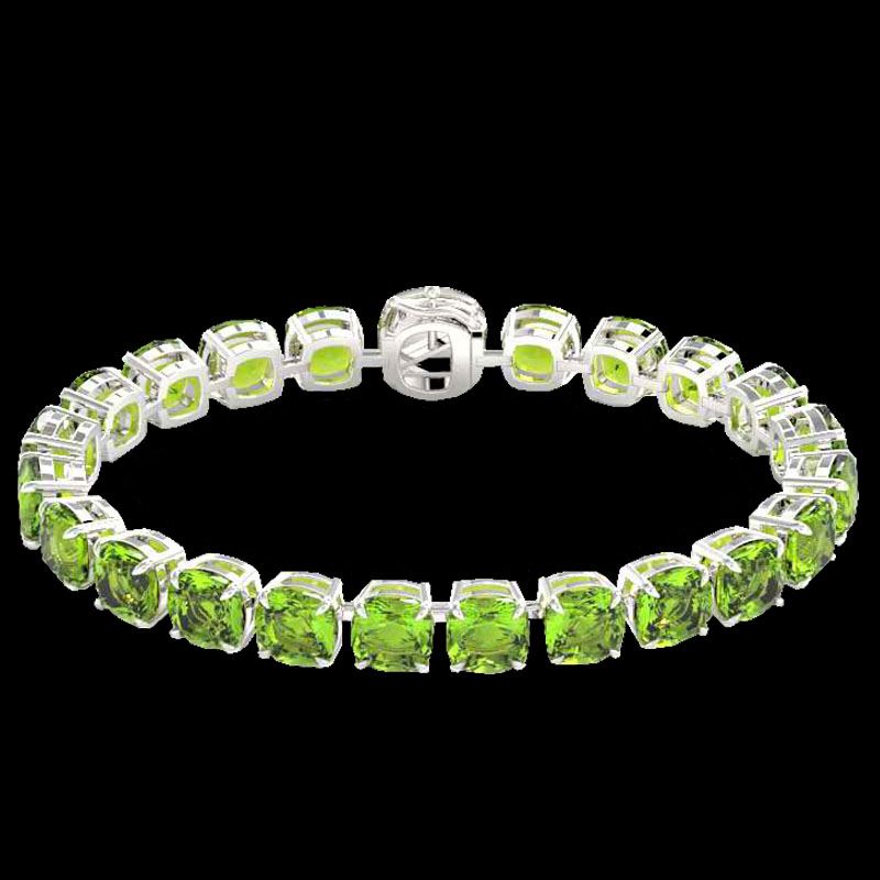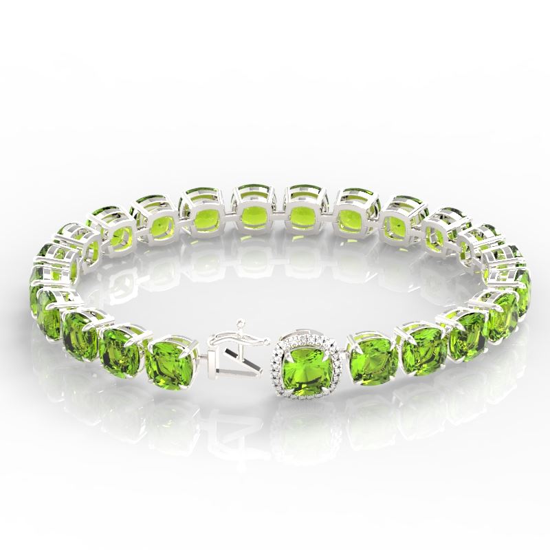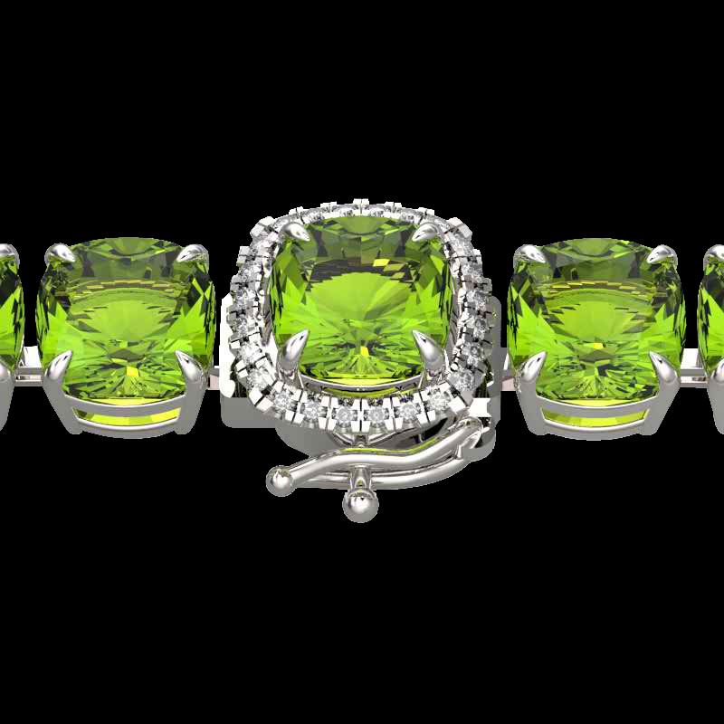 REF-259M8H -23317 ---- 40 CTW Peridot & Micro VS/SI Diamond Halo Designer Bracelet 14K White Gold ---- Luxury Designer Brand Bracelet Appraised at $18,600 Certificate Number US23317 14k White gold, Bracelet Size is 7 Inches, Bracelet measuring approx. 9 mm x 7 Inches, weighing in total approx. 14 grams. Made in the USA and is stamped 14k, Main stone 39.75 carat total weight containing 22 pieces of Intense Green color with AAA quality Cushion shape cut Peridot , Stone #2 0.25 carat total weight containing 24 pieces of H-I color with VS/SI quality Round shape cut Diamond