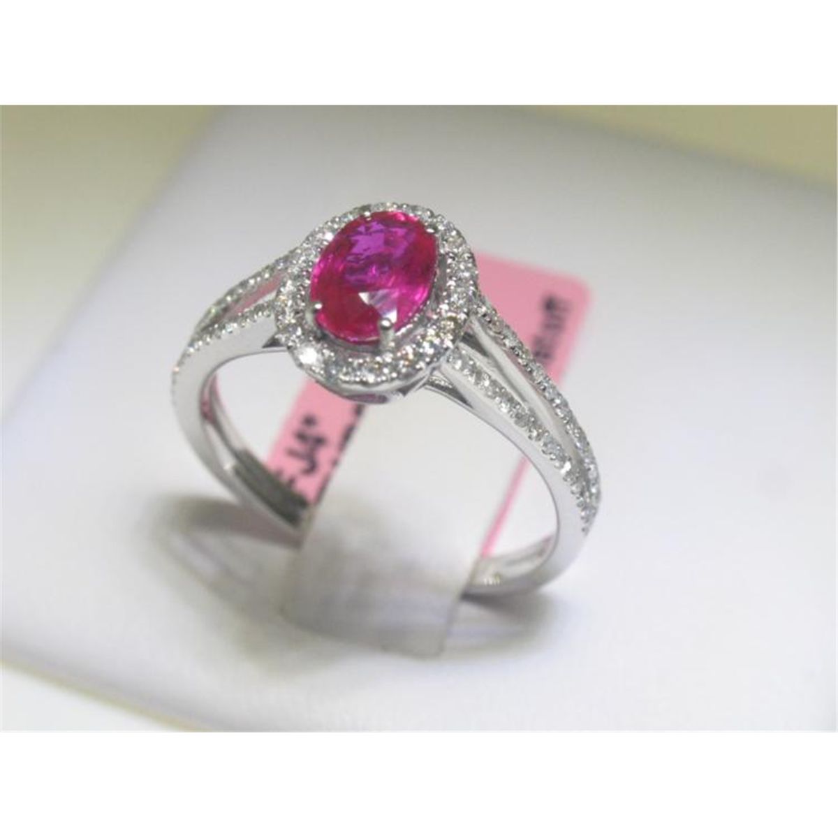 Ruby and Diamonds 14K White Gold RingTotal Weight of round-cut Diamonds - 0.40 CT One center oval cut Ruby - 0.85 CT14K White Gold - 2.58 grams Signed by Michael ChristoffAppraised Value: $ 4,200.00 *