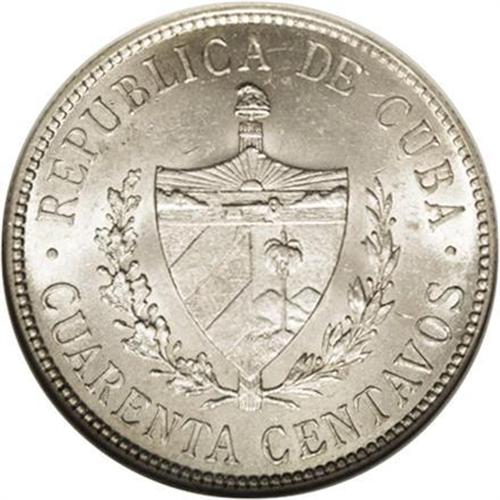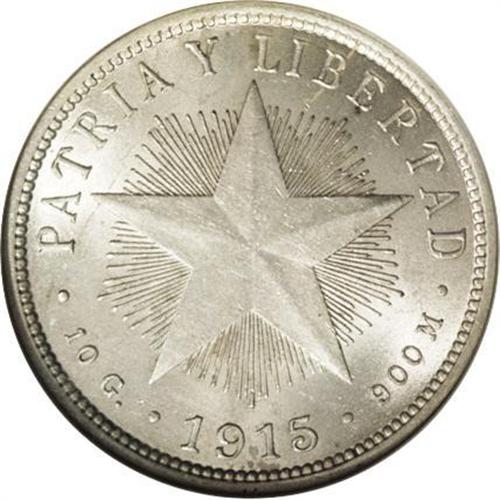 40 Centavos 1915, high relief star, KM14.1, MS63 NGC. F Republic 40 Centavos 1915,