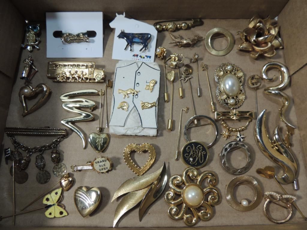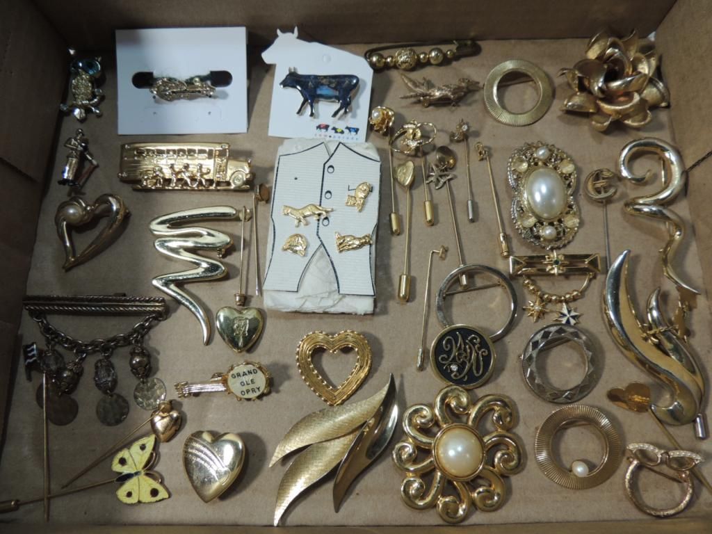 DECORATIVE PINS, GOLDTONE PINS. FASHION JEWELRY. STATEMENT JEWELRY. AS SHOWN. SEE PHOTO FOR MORE DETAILS.