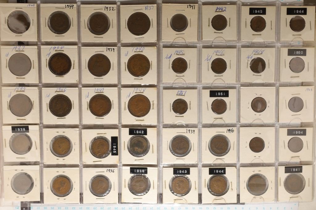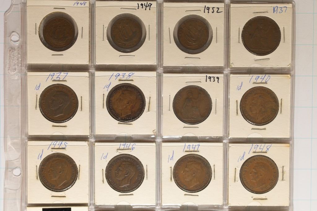 PENNIES AND LARGE CENTS, DATES RANGE FROM 1935-1954. MAY NOT CONTAIN ALL DATES AND MAY CONTAIN DUPLICATES.