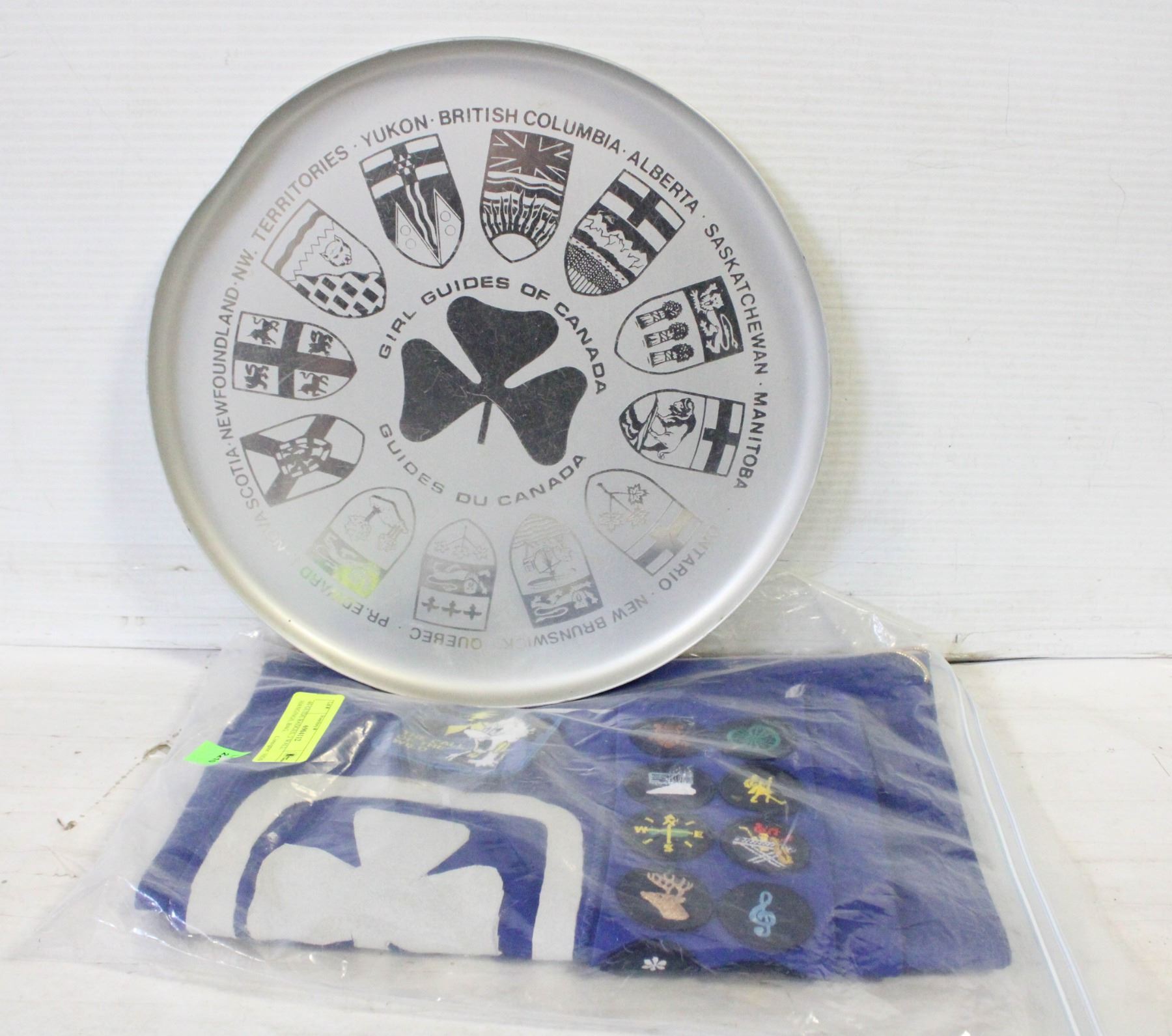 40 GUIDE BADGES, 2 WALL HANGINGS, BAG,