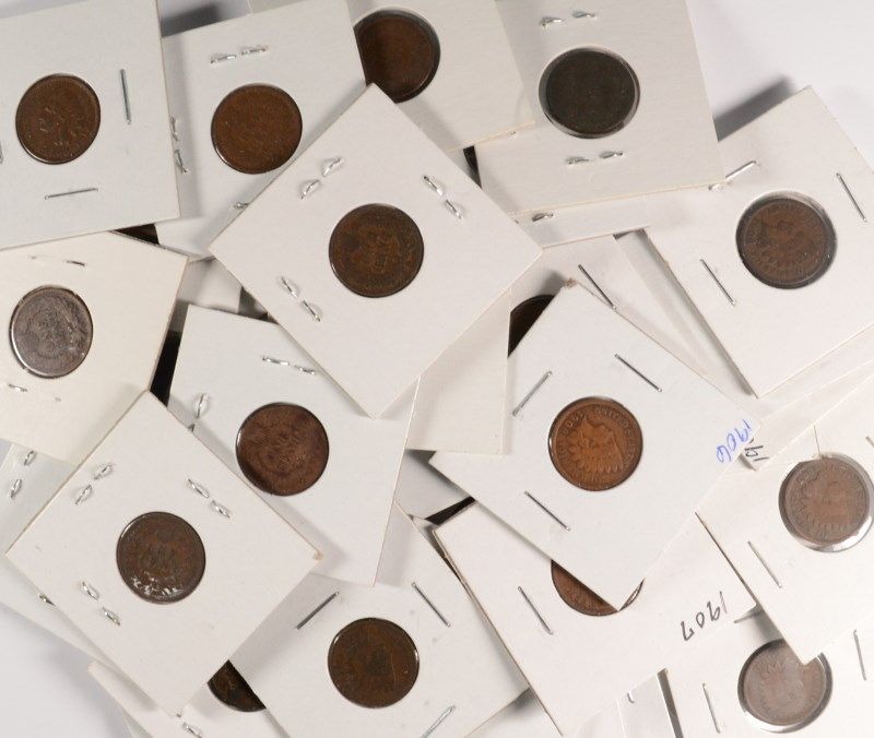 40-INDIAN HEAD CENTS, MOSTLY VG-F, SOME PROBLEMS, IN 2x2's