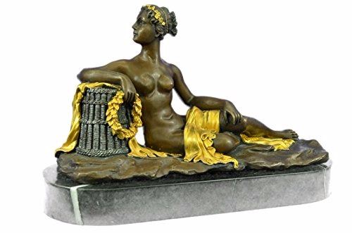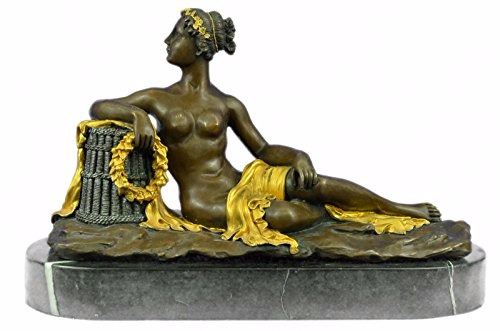 She Is An Artist'S Muse. A Greek Goddess Poses For A Painting, Sitting Before His Easel. She Sits With The Posture Of Royalty. Her Head Is Held High. Her Back Does Not Curve. Her Face Does Not Give Way To Even The Slightest Hint Of A Smile. A Yellow Patina Wreath Crowns Her Neat Hair, While She Clutches Another Wreath In Her Dangling Arm. She Leans An Elbow On A Straw Basket And Looks Away From The Painter. She Gently Drapes Her Other Hand On Her Curled Legs. A Yellow Sash Drapes Over Them. True To The Women Of Her Time, Her Body Is Curvy And Full. She Is Comfortable Being The Inspiration For The Strokes Of His Paintbrush. This Brown Patina Sculpture Was Cast Using The Lost Wax Method And Mounted On A Marble Base. Bronze dimensions with marble base: Height 13 X Width 19 inches. Weight: 40 lbs.Please Note: This is a reproduction bronze sculpture from the original molded and signed. This featured bronze sculpture is a recast after the original, and has been done recently. This 100% bronze sculpture is an abstract piece certain to be a conversation piece.Please Note: This is a reproduction bronze sculpture from the original molded and signed. This featured bronze sculpture is a recast after the original, and has been done recently. This 100% bronze sculpture is an abstract piece certain to be a conversation piece.