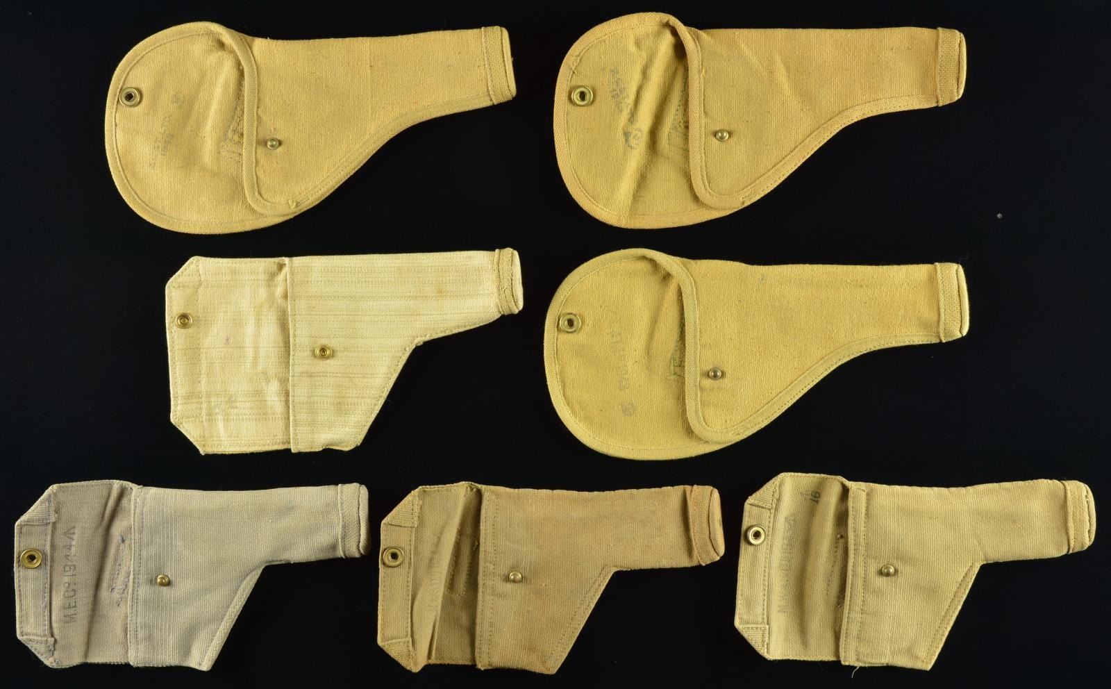 3 WWII Khaki holster w/ Canadian proofs appearing for Inglis Hi Power.