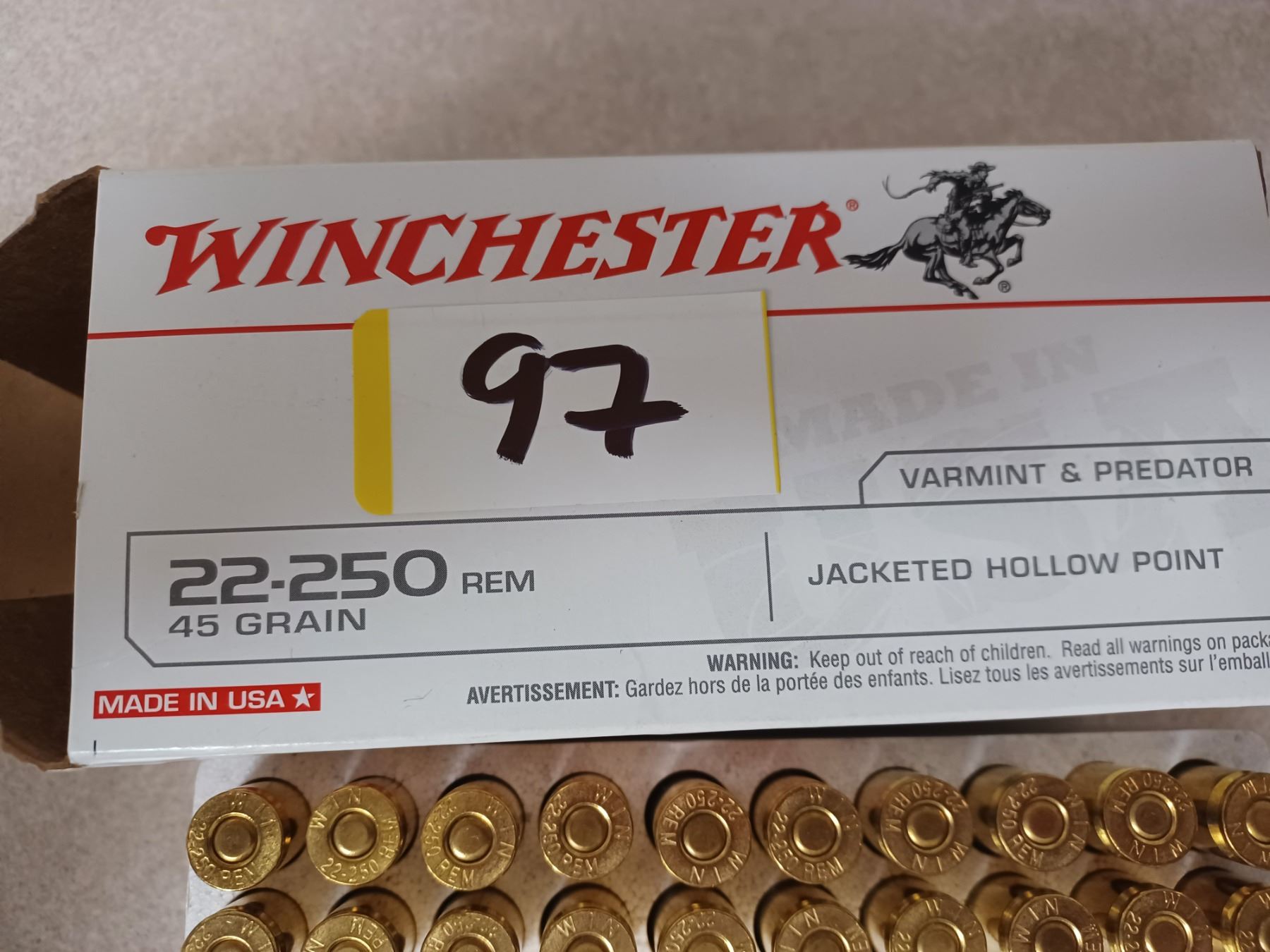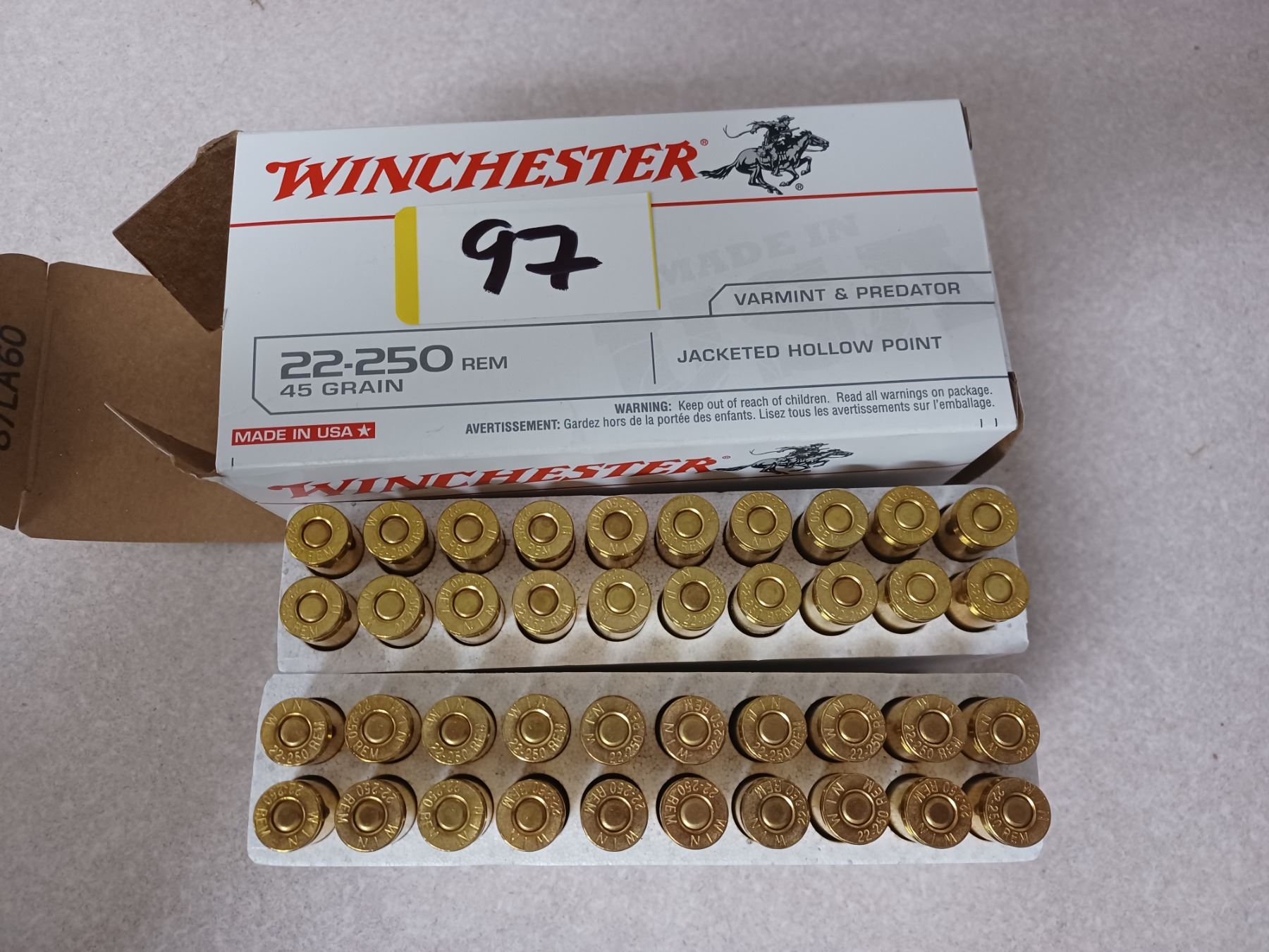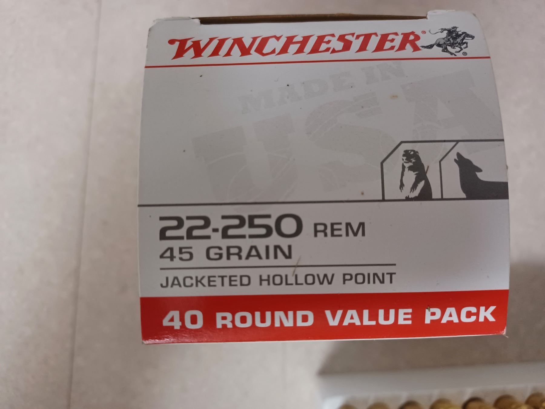 40 ROUNDS OF WINCHESTER 22-250 45 GRAIN AMMO