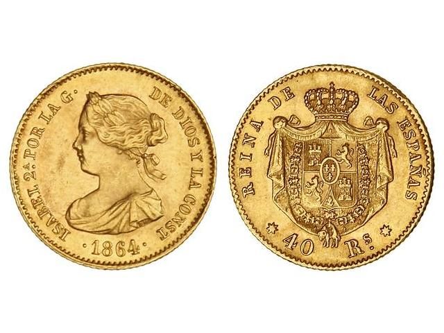 40 Reales. 1864. SEVILLA. (Pequeños golpecitos). MUY ESCASA. Cal-107. MBC+.