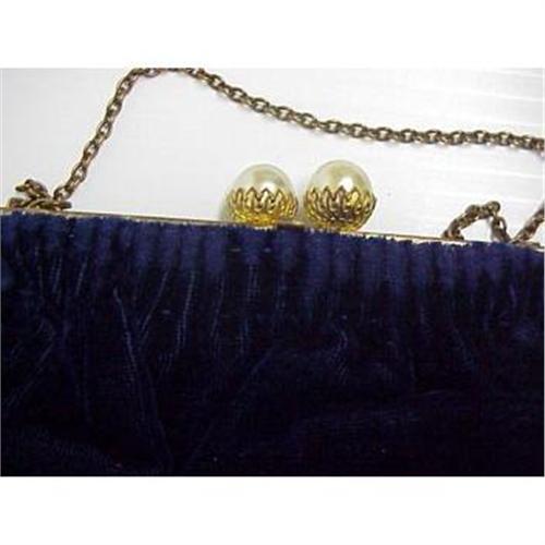 Gorgeous vintage purse, Hand made in France Love the frame with two ornate large pearls,This purse is made from lovely navy blue color velvet and lined with off white satin.(orig. label on inside).Love the elegance of this purse.Excellent condition nice and clean, some wear showing on the velvet around the frame.This is a true gem perfect addition for a serious collector.US Buyer please pay 7.00 for shipping plus insurance, Thank You very much for looking!