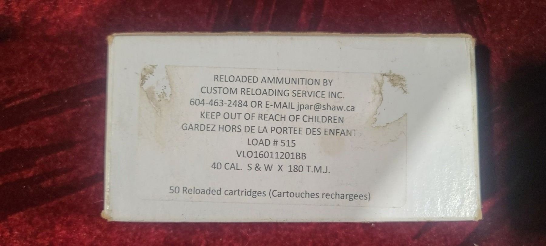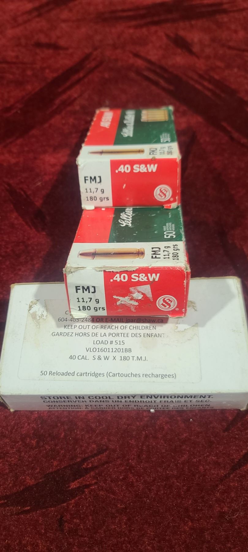 40 S&W THREE BOXES IN TOTAL: TWO ARE LELLIER AND BALLOT 180GR FMJ AND ONE BOX OF 50 IS RELOADED 180GR T.M.J