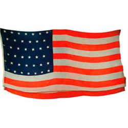 40 STAR AMERICAN FLAG. 10' x 15'. Wool bunting flag, commercially made and stenciled "H.A. Bowman & Co. Makers Worcester, Mass." A very rare unofficial pattern. The 40th star commemorates the Dakotas which became states in 1889. 40 star flags are rarely encountered. CONDITION: Overall condition very good. Scattered mothing and minor staining, does not effect esthetics. 4-53394 JS35