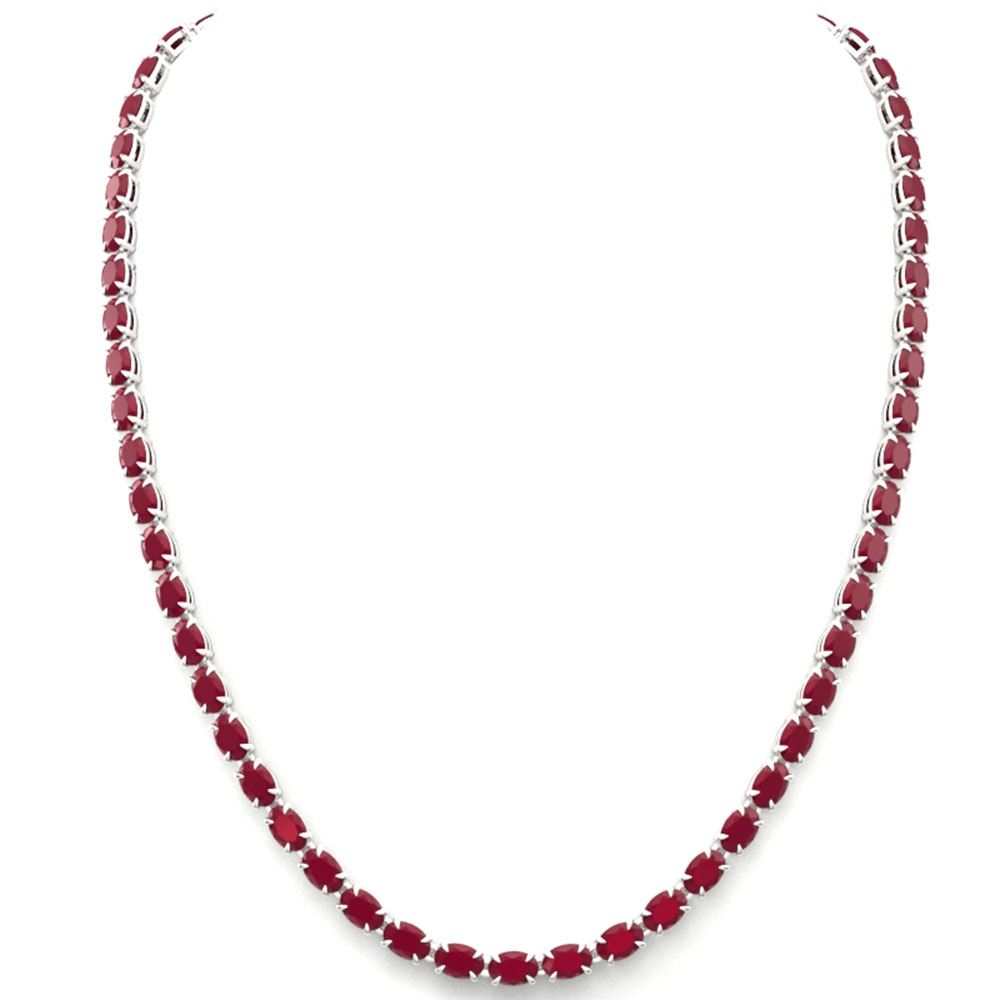 REF-218M2G - SKU: 23379 ---- 40 ctw Ruby Eternity Tennis Necklace 14k White Gold