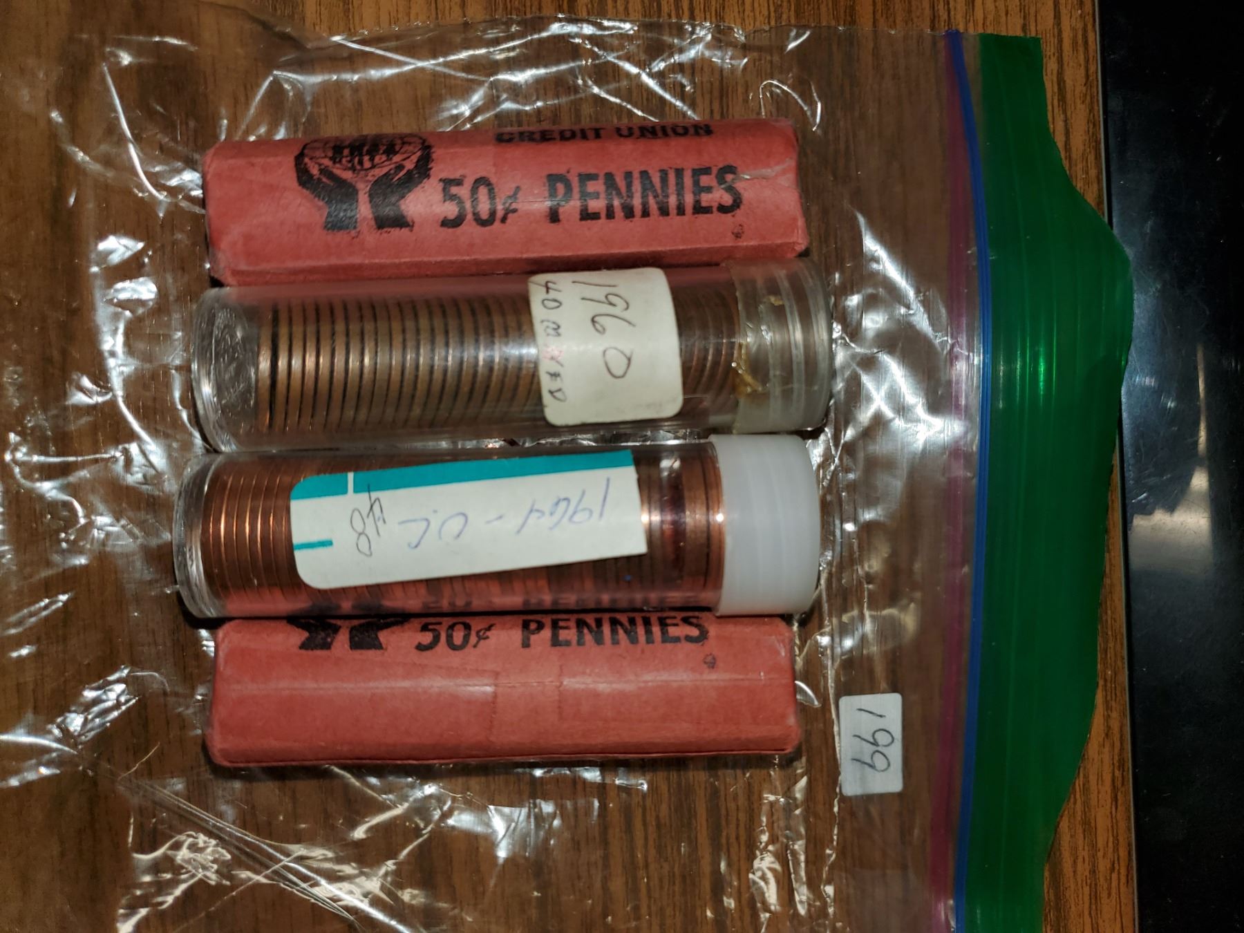 (40 mixed dates 1960’s), (48 UNC to PL-1964), (50-LB,B5-1965), (50-SB,B5-1965),188-Small Canadian pennies,Queen Elizabeth II