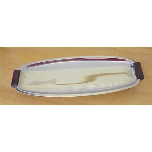 Lovely 1940's long oval serving dish, made from gorgeous chrome and cherry color feet and handles circa 1940's by Gourmates and designed by Glow-Hill Canada - Measures 15" long x 5 3/4" wide,Very unusal shape and i have never had one that long, US Buyer please pay 7.00 for ship + insce, Thank You so much for looking!