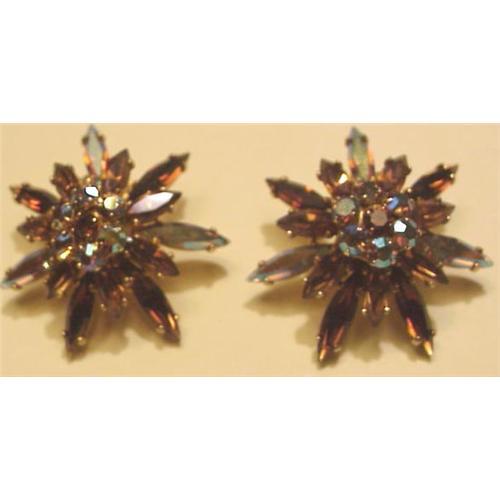 Lovely 1940's Rhine Stone pair of clipon earrings - Gorgeous deep amber color stones exquisite and highly polished , creating most beautiful flower like shape with raised center- This is GORGEOUS, The back is signed Sherman and finished in gold finish - Made and designed by famous SHERMAN well known for quality, beauty and highly collectible - Excellent condition - Free of damage - Measures over 1 1/8" in diam. - US buyer to pay 6.00 for shipping. + insce.- We prefer Paypal - Thank You for looking!