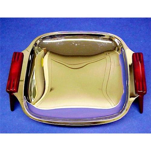 Gorgeous chrome serving dish, made in Art Deco style and it dates back to 1940's, Made by Glo-Hill and styled by Gourmates Canada - , Love the gorgeous centar-post-handle made from beautiful cherry color bakelite - Measures about 9" x 8 1/2" and 6 1/2" high - This is a BEAUTY!, Very good condition but for some fine surface scratches - US Buyer please pay 8.00 for insured shipping - We accept Paypal - Thank You so much for the visit!