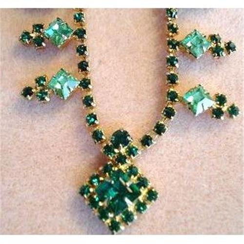 GORGEOUS NECKLACE - MADE FROM BEAUTIFUL GREEN RHINESTONES IN VARIOUS CUTS AND SHAPES - as per images, BEAUTIFUL CLASSY DESIGN AND QUALITY THAT MAKES THIS NECKLACE LOOK LIKE A REAL THING,EXCELLENT CONDITION AND IT MEASURES ABOUT 15 1/2" LONG, US BUYER TO PAY 7.00 FOR SHIPPING PLUS INSURANCE.THANKS.
