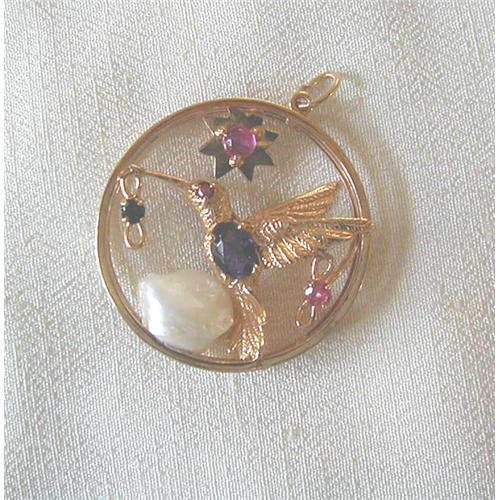 <tr><td>Title:40's VINTAGE 14K & GEM-SET"Hummingbird"PENDANT</td></tr>