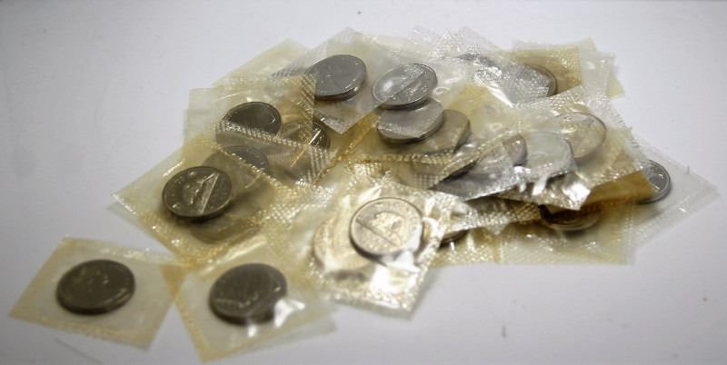 40 x 1965 Canadian Small 5-Cent Nickel coins in original plyofilm from the Royal Canadian Mint