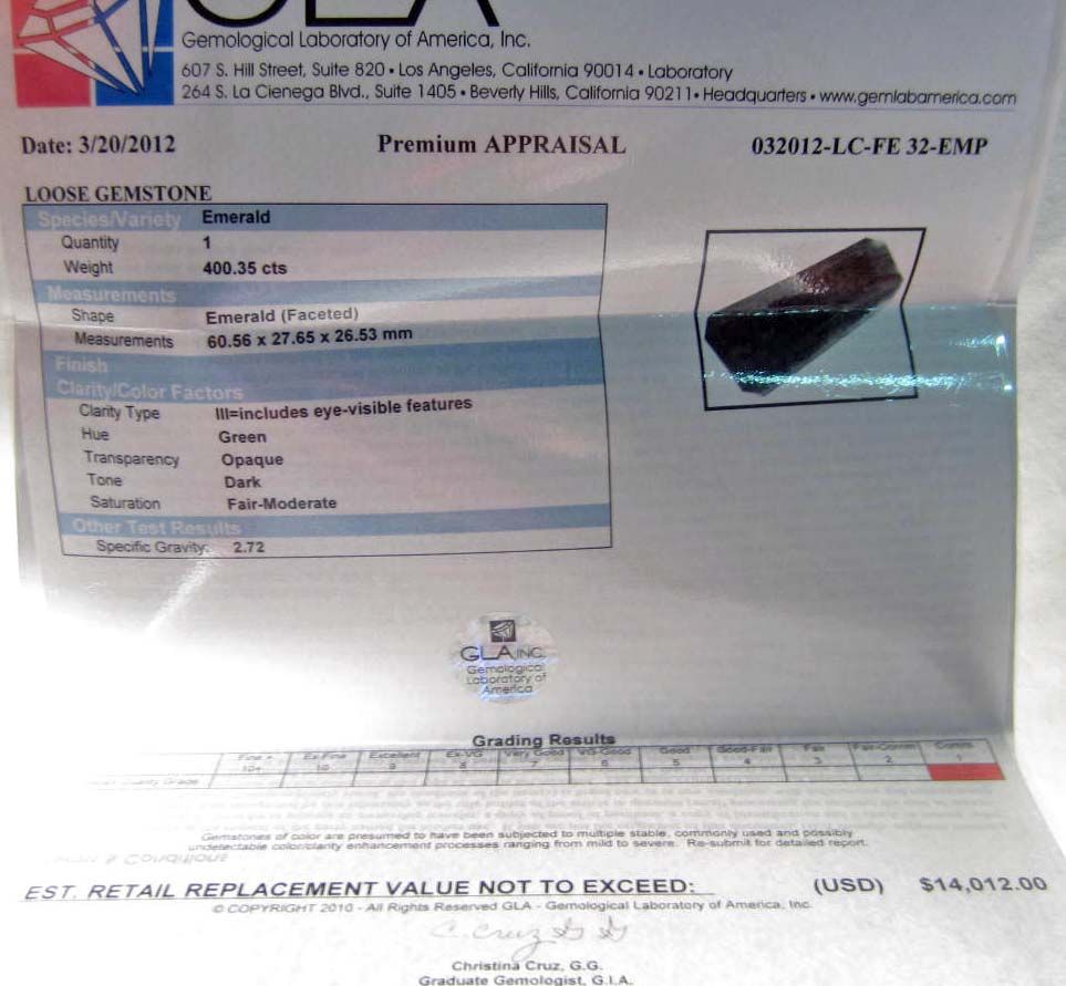Comes w/ GLA Appraisal of $14,012.00. 60.56 by 27.65 by 26.53 mm.