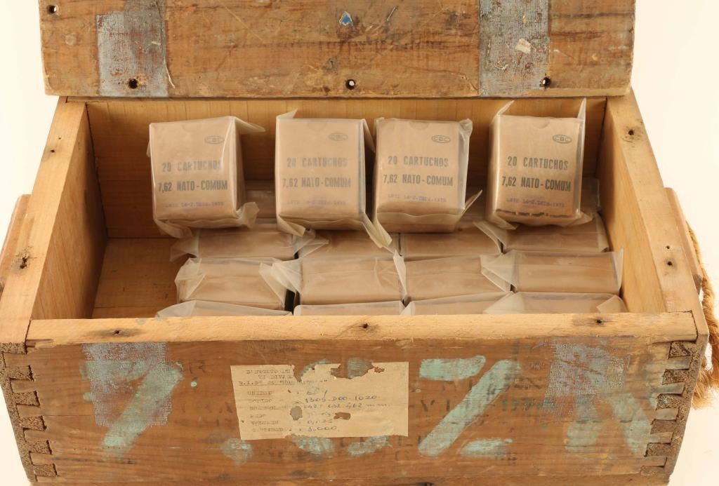 400Rds in sealed boxes inside wooden crate with rope handles.