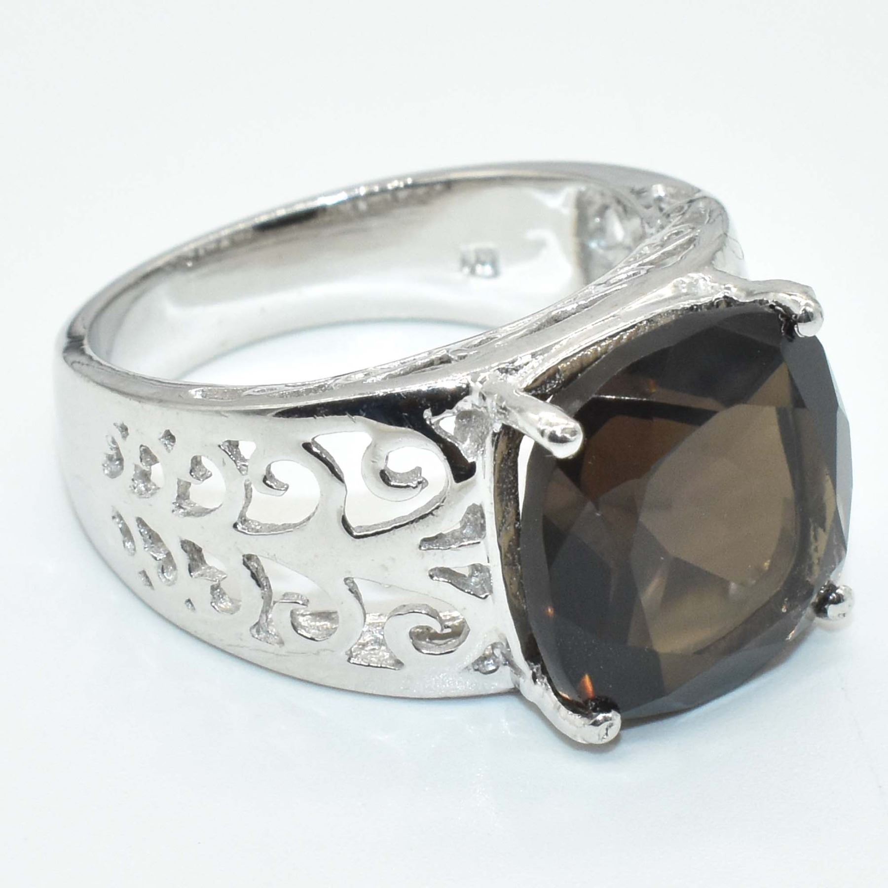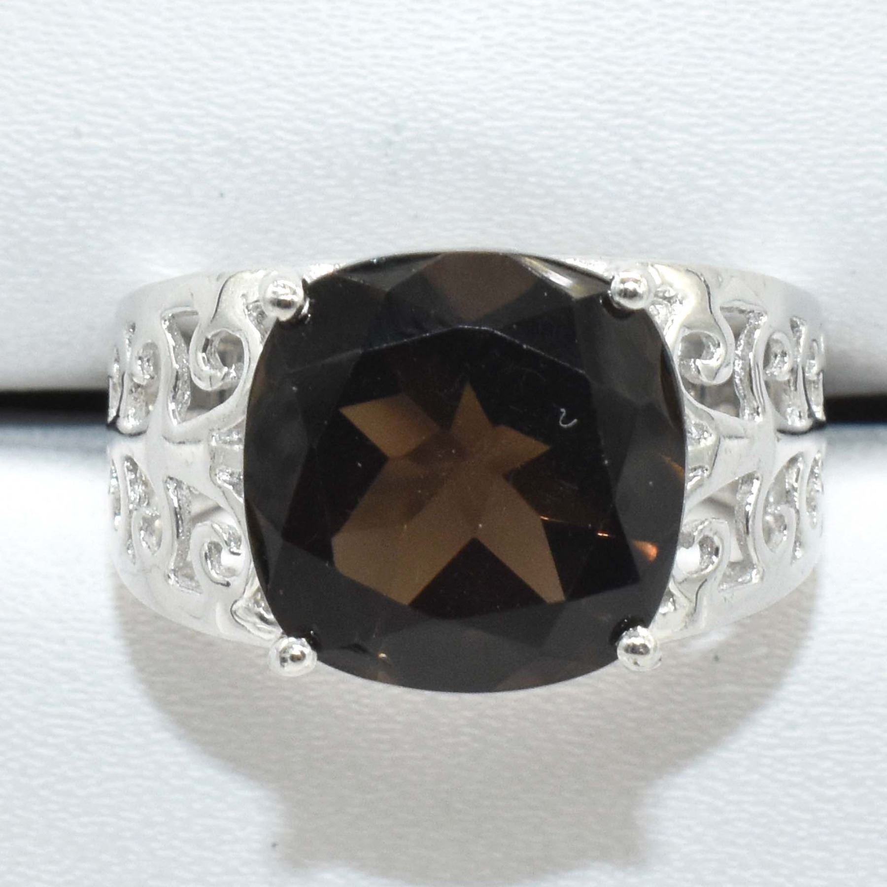 $400 SILVER 'SMOKEY QUARTZ'(8.1ct) Ring SZ.8