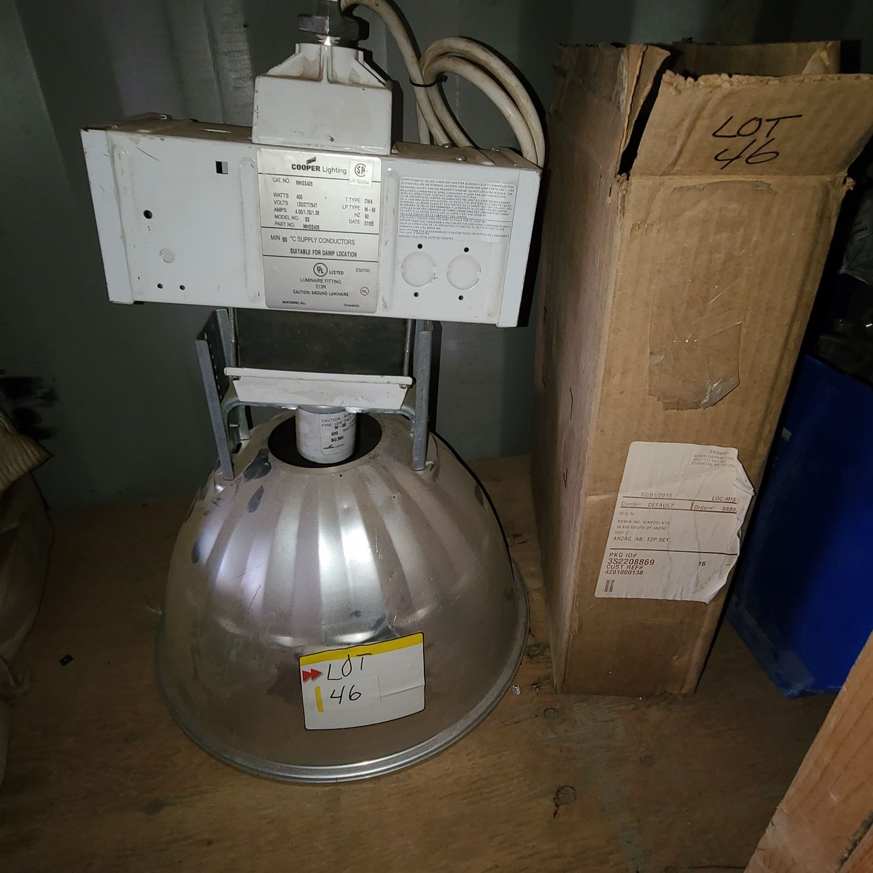 400 WATT COOPER LIGHT, WAREHOUSE LIGHT, LIGHT COVERS, 6 EXPLOSION PROOF LIGHT CASSES, AND ONE EMERGENCY LIGHTING SYSTEM
