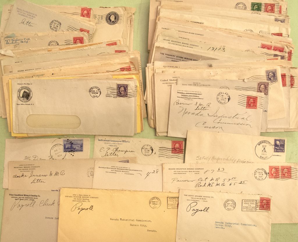 This covers all have a non-Nevada cancel, but were sent to the Nevada Industrial Commission, so they have a Nevada connection. These are all mining related and mostly Nevada mines with home offices in other states. Around 400 pieces. Many Duplicates.