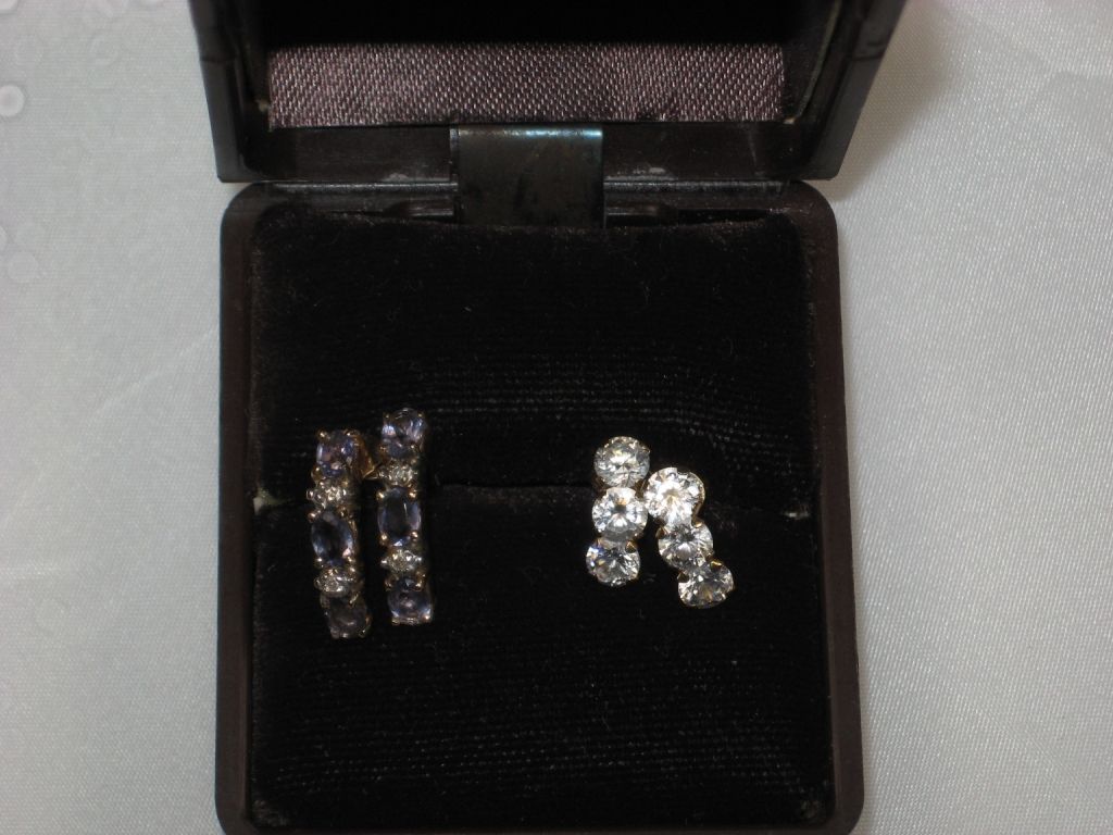 4007 - Gold 10 kt Tanzanite and diamond stud earrings plus pair of Cubic. Stud earringsplus pair of Cubic. Stud earrings