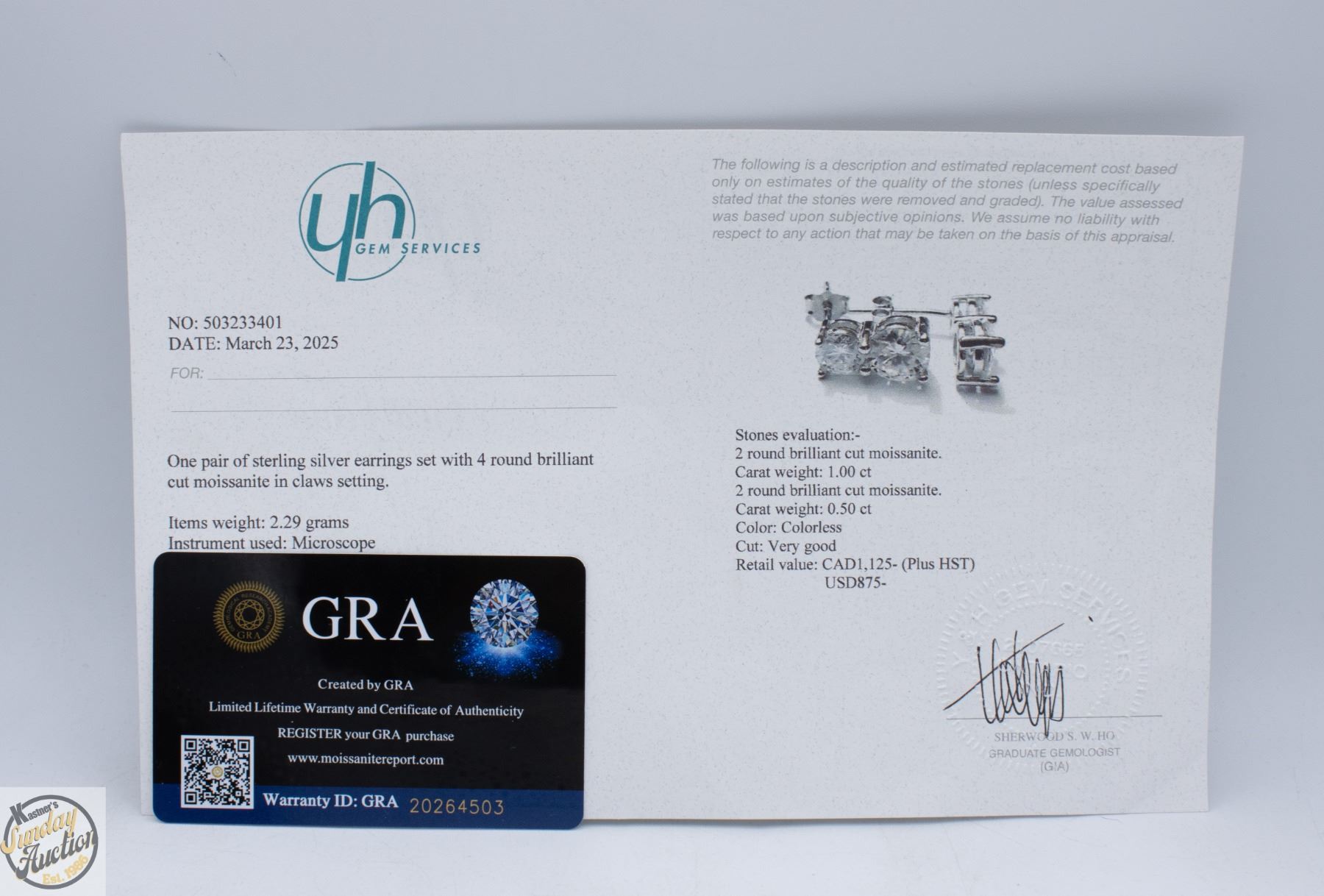 CUT MOISSANITE STONE VVS D COLOR SET BELOW A 0.50 ROUND BRILLIANT CUT MOISSANITE STONE SET IN 925 SILVER EARRINGS RETAIL VALUE $1,125.00 **ALL ITEMS MUST BE REMOVED BY 5PM SATURDAY, MARCH 28TH 2026. ALL REMAINING ITEMS WILL BE SUBJECT TO A $6.00 PER DAY STORAGE CHARGE. ANY ITEMS REMAINING AFTER MONDAY, APRIL 20TH 2026 WILL BE CONSIDERED FORFEITED. NO REFUNDS WILL BE ISSUED FOR FORFEITED ITEMS. TO SCHEDULE A PICK UP APPOINTMENT CLICK HERE