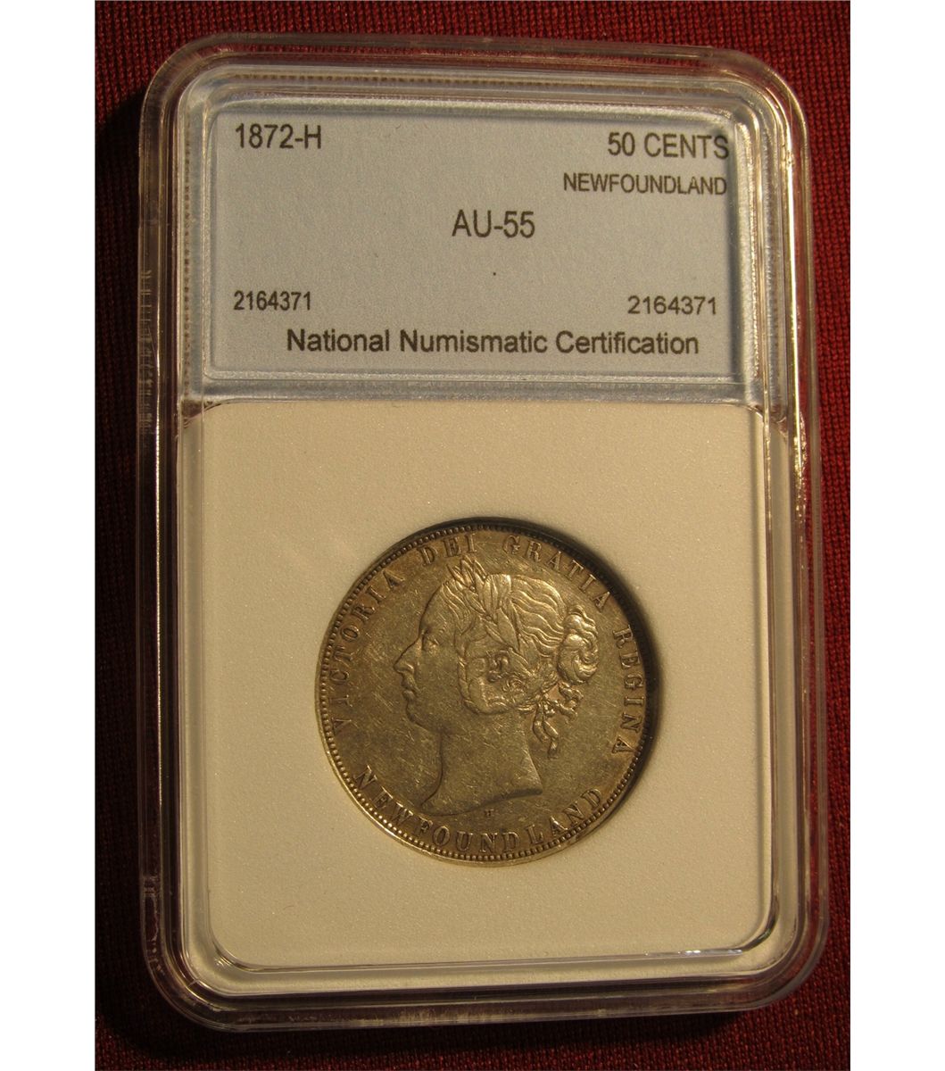 402. 1872H Silver 50c Newfoundland NNC AU55 # 2164371. Well struck