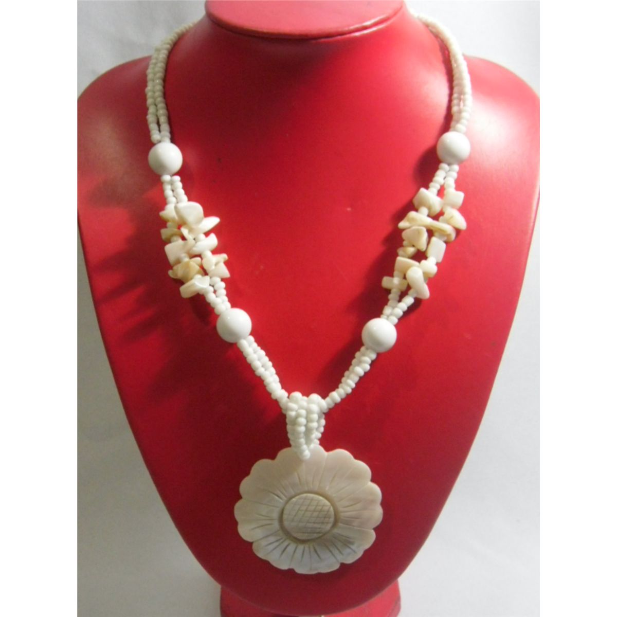 403CTW PHILIPPINE CAPIZ FLOWER PENDANT BEADED NECKLACE **|**|** 403CTW PHILIPPINE CAPIZ FLOWER PENDANT BEADED NECKLACE 20INCH ; MSRP: $0