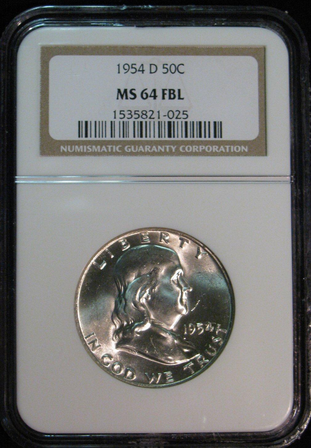 404. 1954 D Franklin Half Dollar. NGC slabbed MS 64 FBL