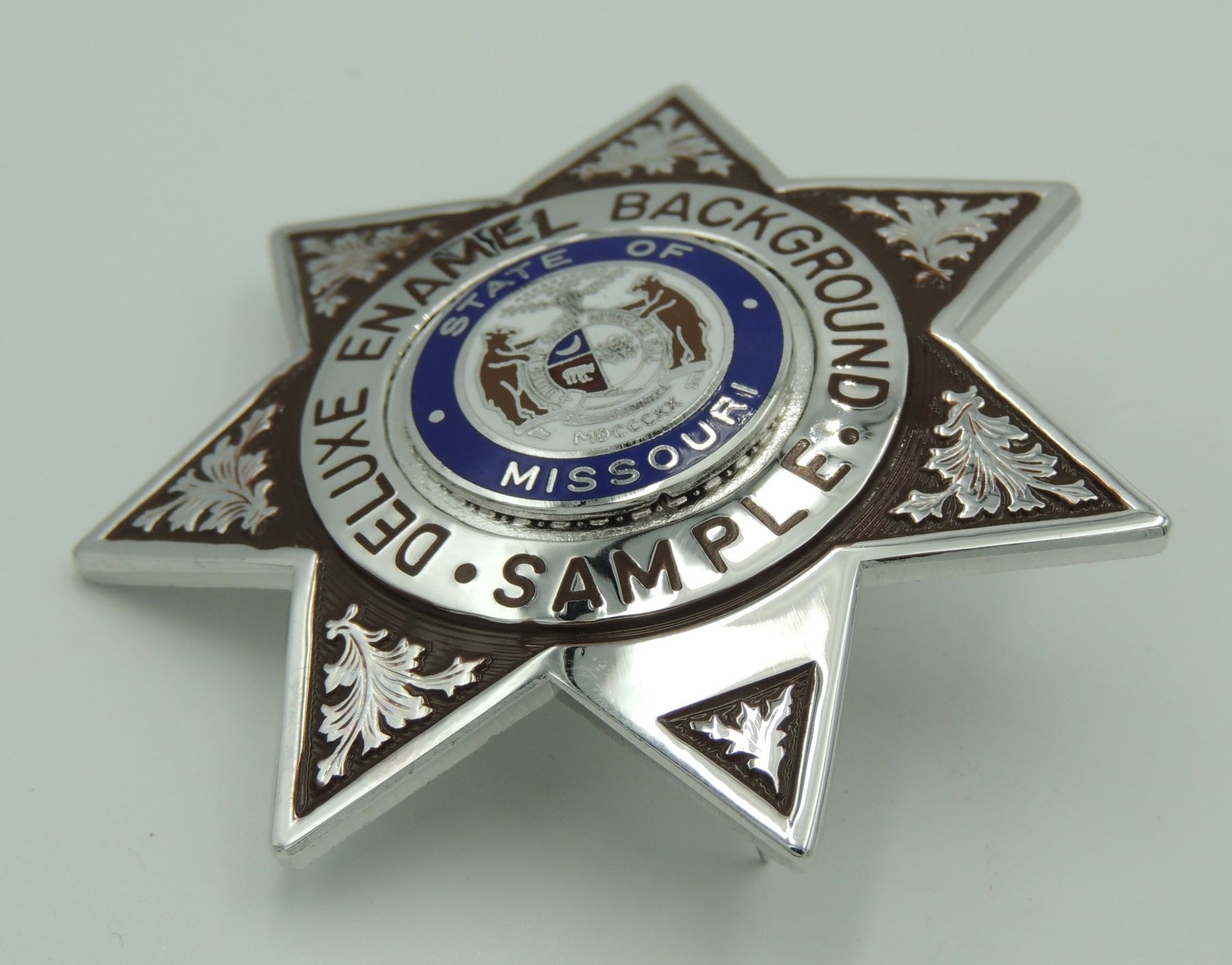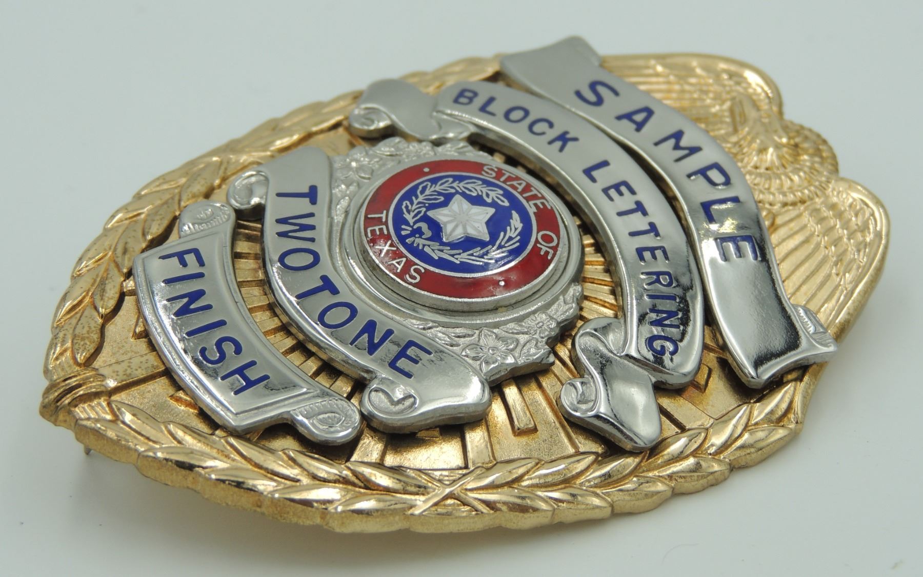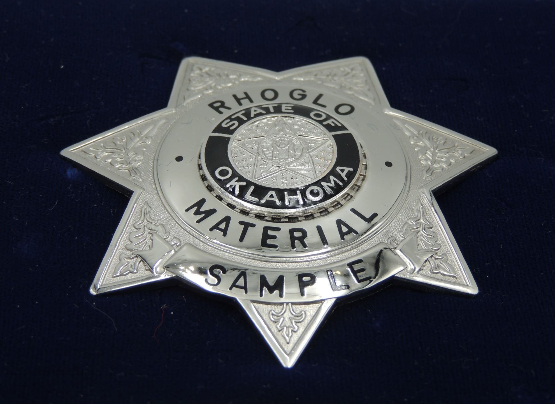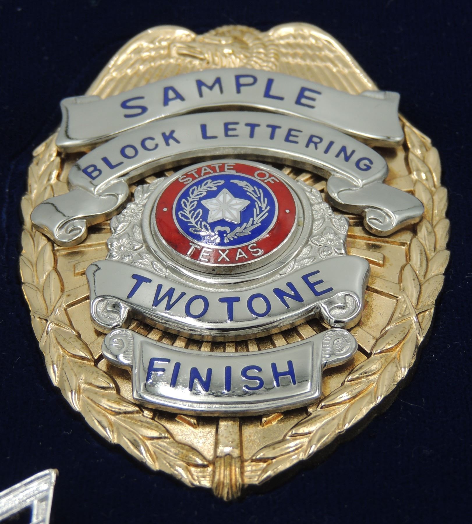 V.H. BLACKINTON & CO. INC ATTLEBORO FALLS MASSACHUSETTES USA. INCLUDES FOLDING CASE W/ 7 FULL SIZE POLICE BADGE AND SHIELD VARIATIONS, WITH ADDITIONAL 11 RANK INSIGNIA AND COLLAR BADGES PRODUCED BY THE COMPANY. BADGES AND INSIGNIA CAN BE REMOVED OFF BLUE BOARD TO REVEAL REVERSE PINS AND MARKINGS. EACH BADGE DESCRIBLES FINISH/STYLE/VARIATION BADGE TYPE. EXCELLENT QUALITY AND RARE SALESMAN SAMPLE CASE WITH POLICE INSIGNIA, TO FAMOUS LAW ENFORCEMENT BADGE PRODUCER BLACKINTON & CO.