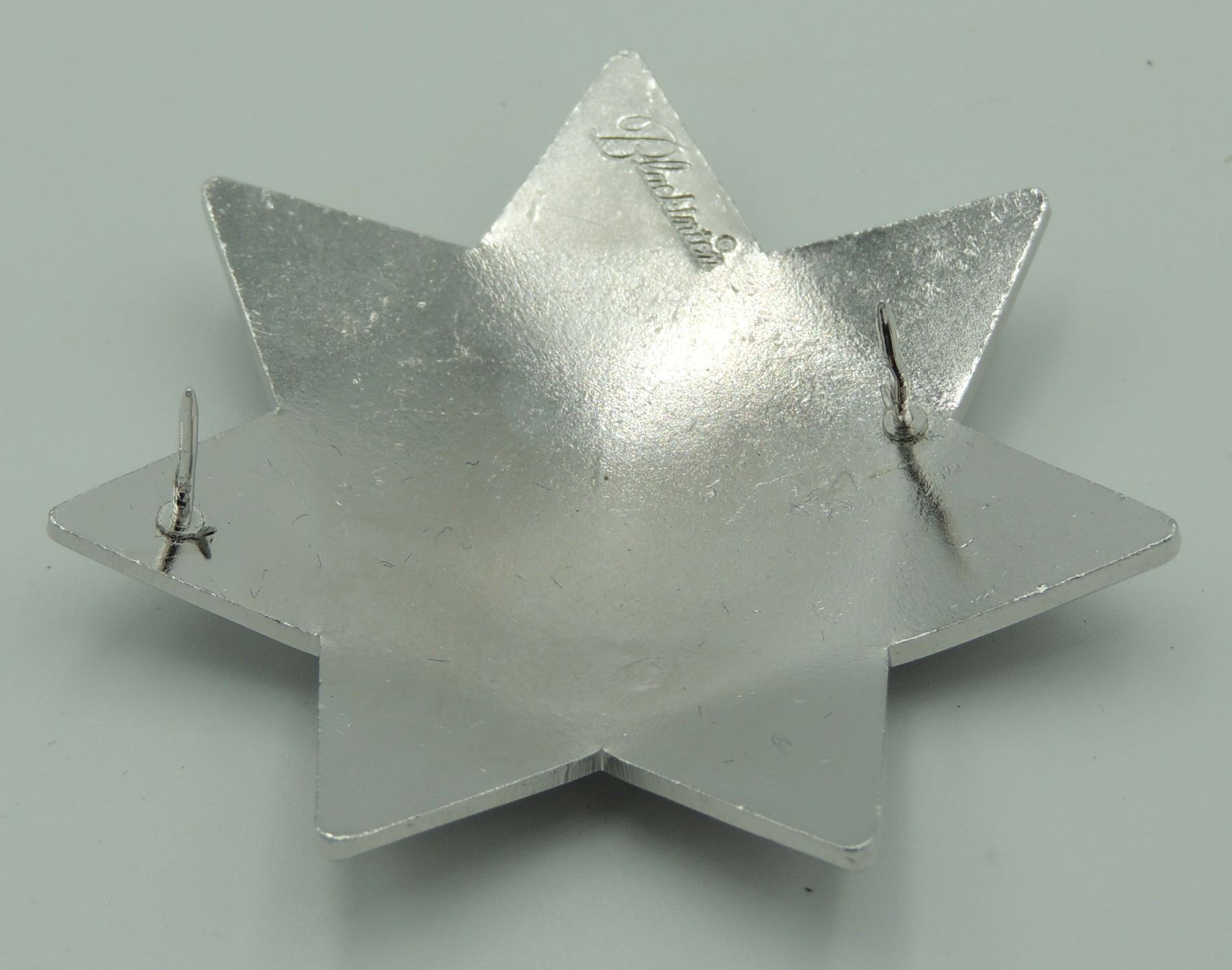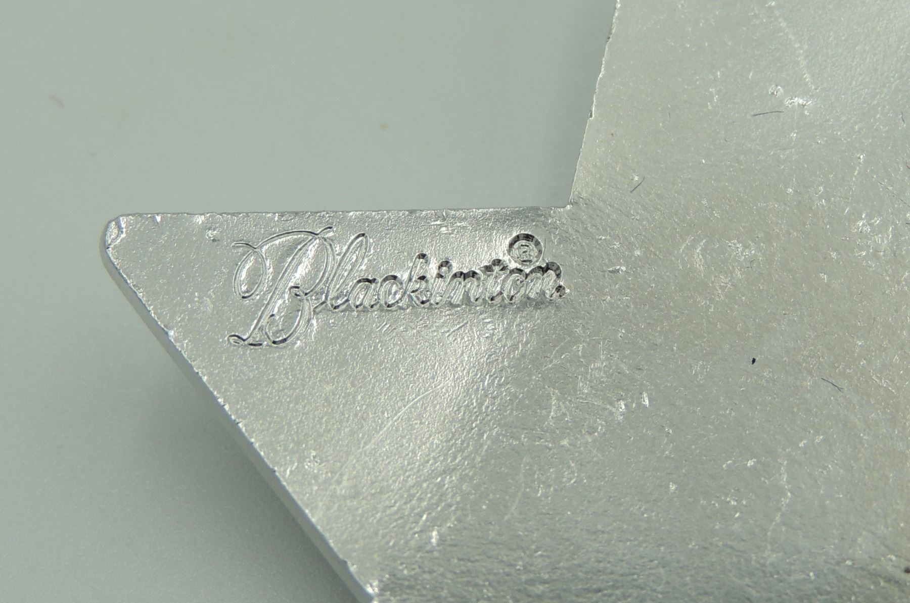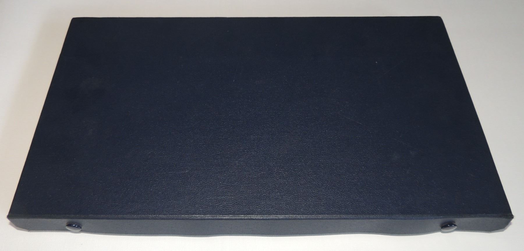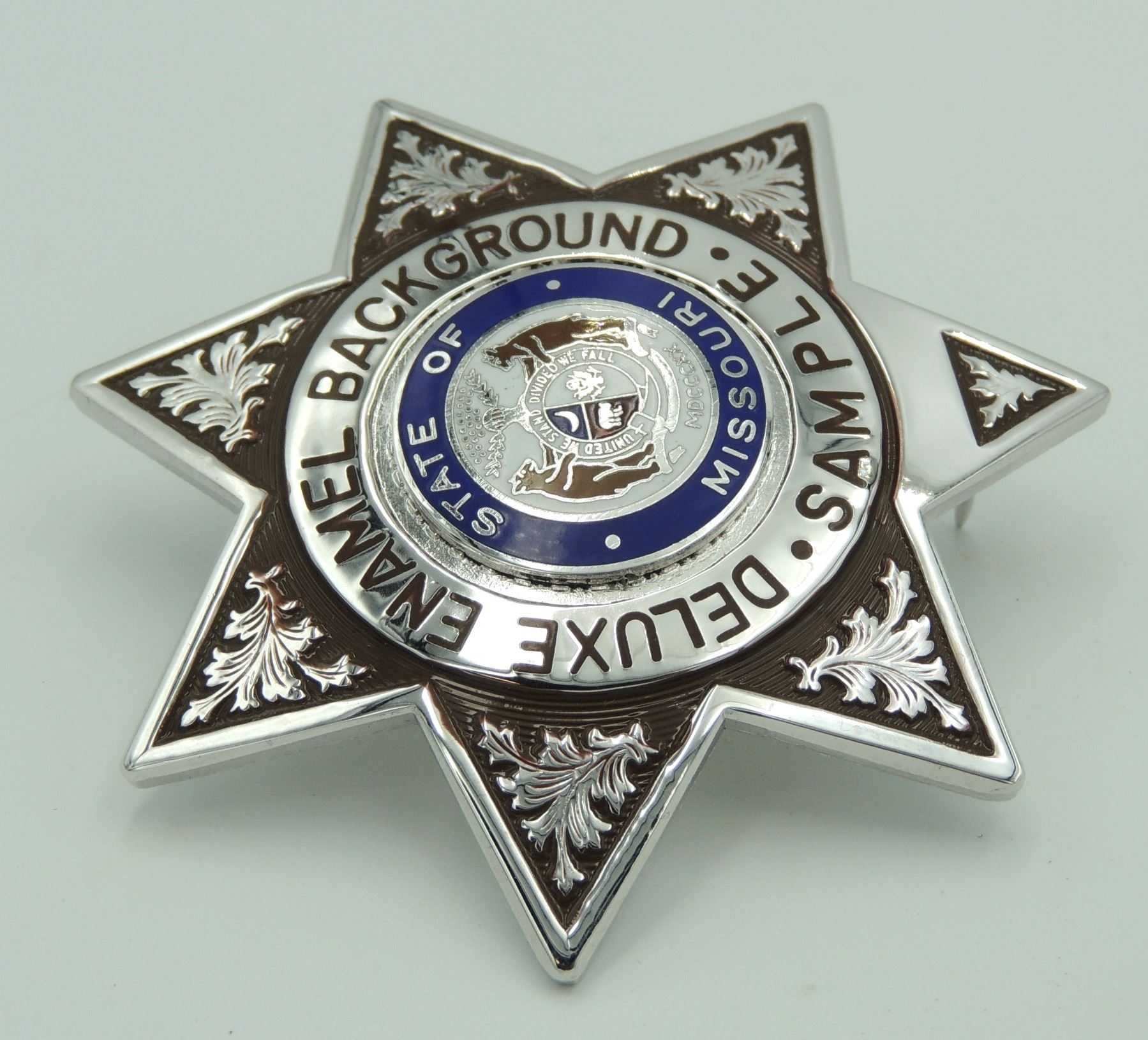 V.H. BLACKINTON & CO. INC ATTLEBORO FALLS MASSACHUSETTES USA. INCLUDES FOLDING CASE W/ 7 FULL SIZE POLICE BADGE AND SHIELD VARIATIONS, WITH ADDITIONAL 11 RANK INSIGNIA AND COLLAR BADGES PRODUCED BY THE COMPANY. BADGES AND INSIGNIA CAN BE REMOVED OFF BLUE BOARD TO REVEAL REVERSE PINS AND MARKINGS. EACH BADGE DESCRIBLES FINISH/STYLE/VARIATION BADGE TYPE. EXCELLENT QUALITY AND RARE SALESMAN SAMPLE CASE WITH POLICE INSIGNIA, TO FAMOUS LAW ENFORCEMENT BADGE PRODUCER BLACKINTON & CO.