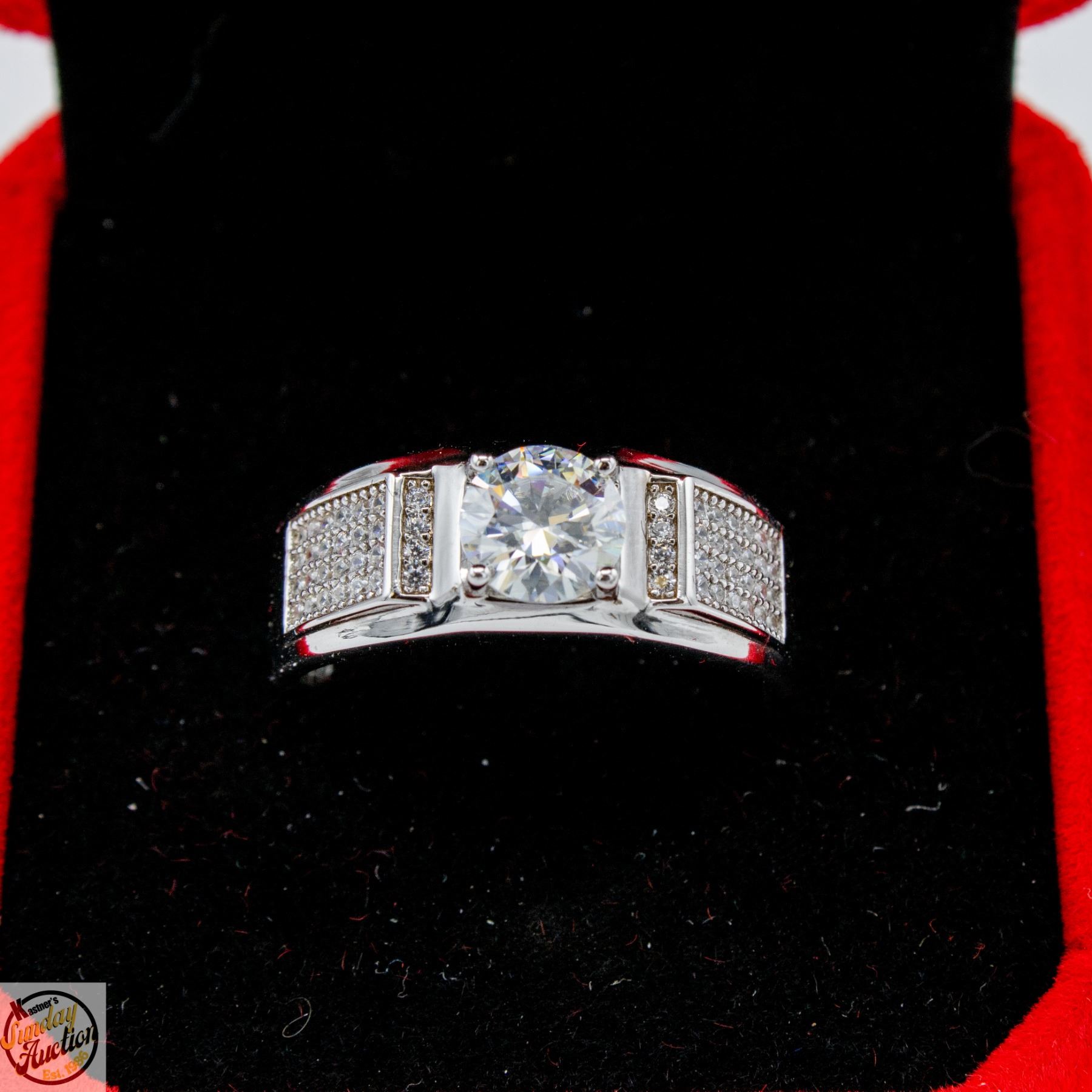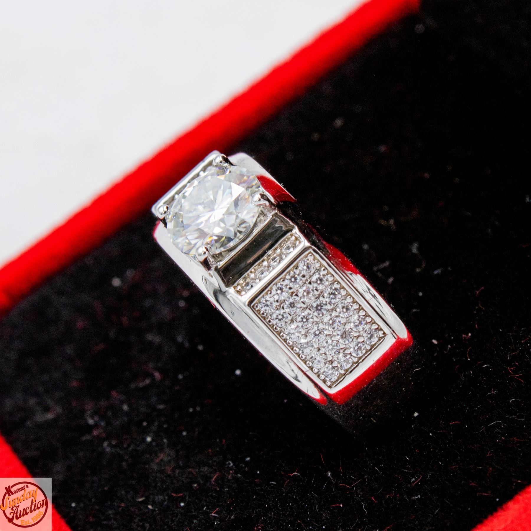 CUT MOISSANITE STONE VVS D COLOR WITH 56 ROUND BRILLIANT CUT MOISSANITE STONES SET IN SHANKS SET IN 925 SILVER RING SIZE 9 RETAIL VALUE $825.00 **ALL ITEMS MUST BE REMOVED BY 5PM SATURDAY, APRIL 4TH 2026. ALL REMAINING ITEMS WILL BE SUBJECT TO A $6.00 PER DAY STORAGE CHARGE. ANY ITEMS REMAINING AFTER MONDAY, APRIL 27TH 2026 WILL BE CONSIDERED FORFEITED. NO REFUNDS WILL BE ISSUED FOR FORFEITED ITEMS. TO SCHEDULE A PICK UP APPOINTMENT CLICK HERE