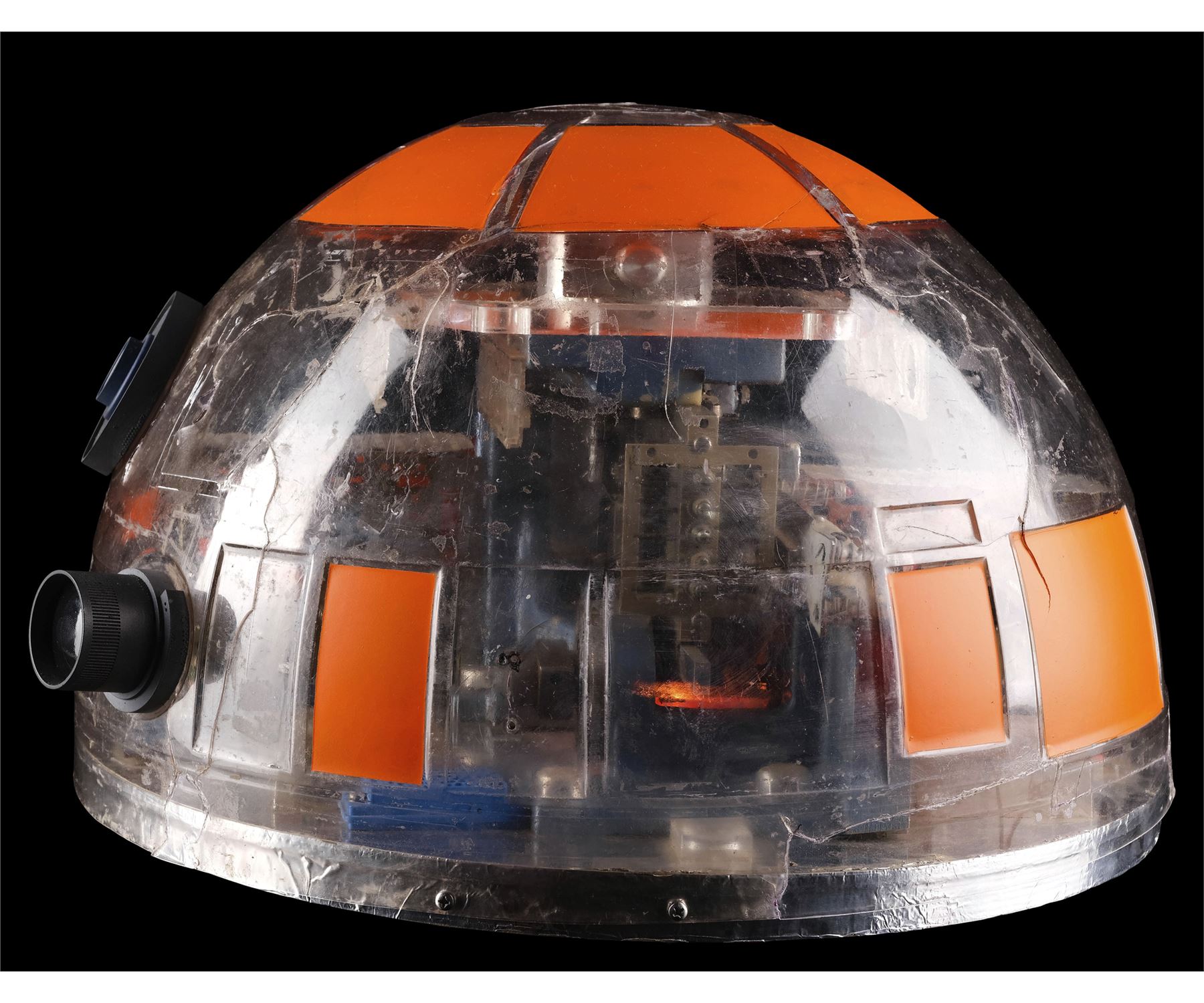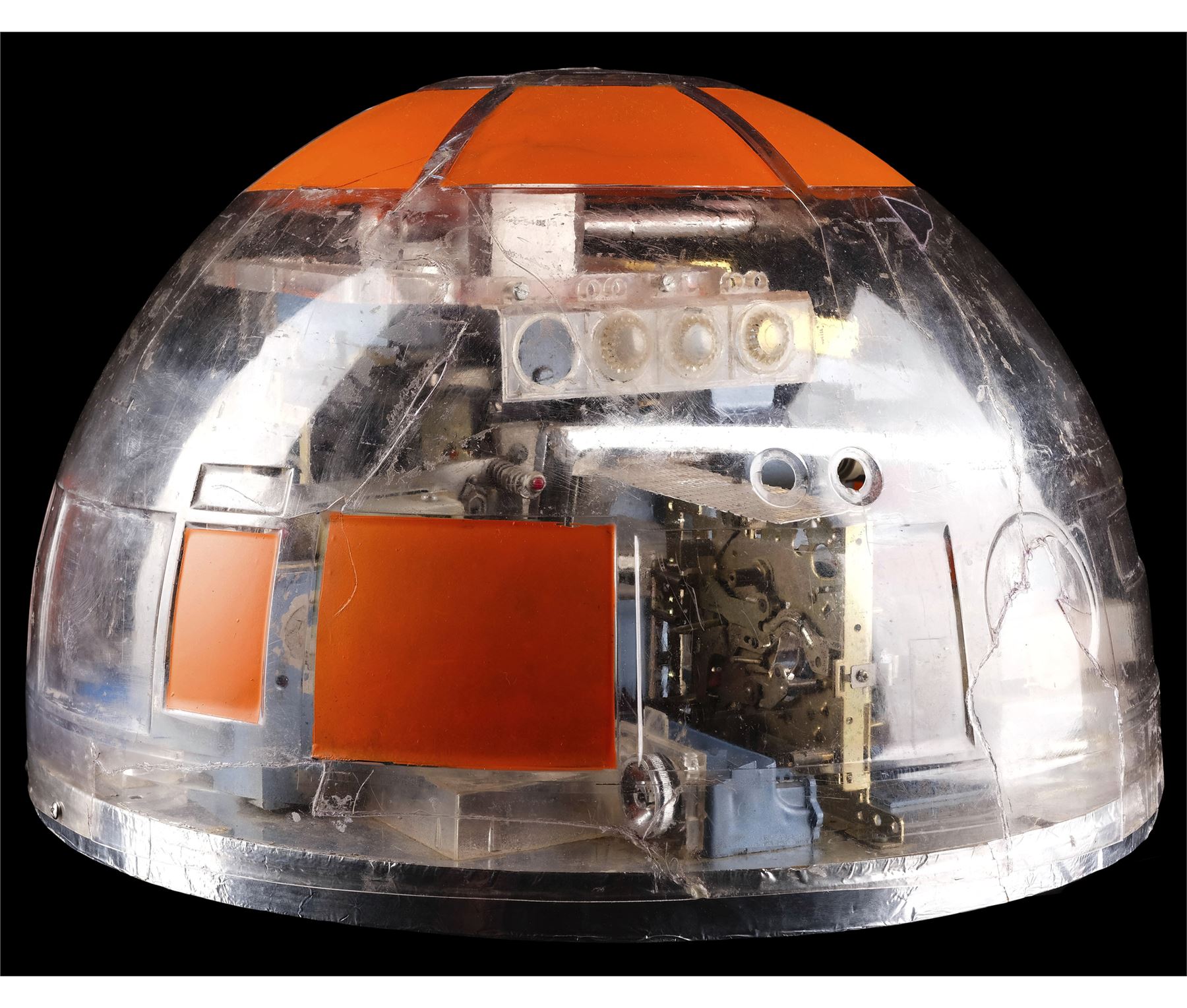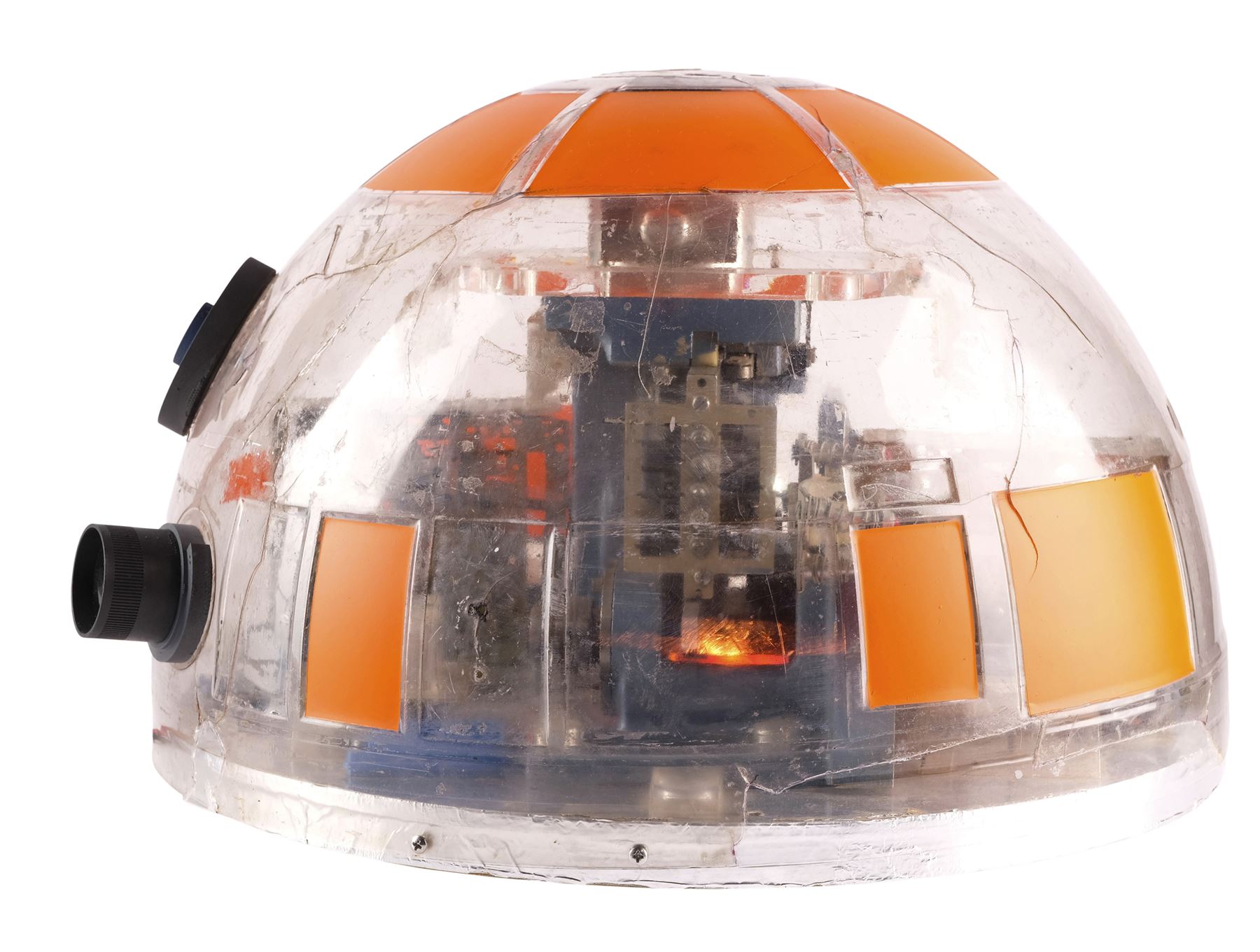STAR WARS: THE EMPIRE STRIKES BACK (1980) - Light-Up R3-Series Astromech Droid Head - A light-up R3-series astromech droid head from Irvin Kershner's Star Wars: The Empire Strikes Back. R3-series droids were distinguished by their unique heads, which featured translucent domes with visible internal mechanics. This head was built specifically for The Empire Strikes Back and was one of two, or possibly three, R3-series droids created for the film, each having subtle variations in color scheme and detail. The droids appeared in sequence within the Rebel Alliance's Hoth base; at least one of the R3 droids built for Empire was also updated and used in Return of the Jedi, in Admiral Ackbar's (Tim Rose) briefing room.