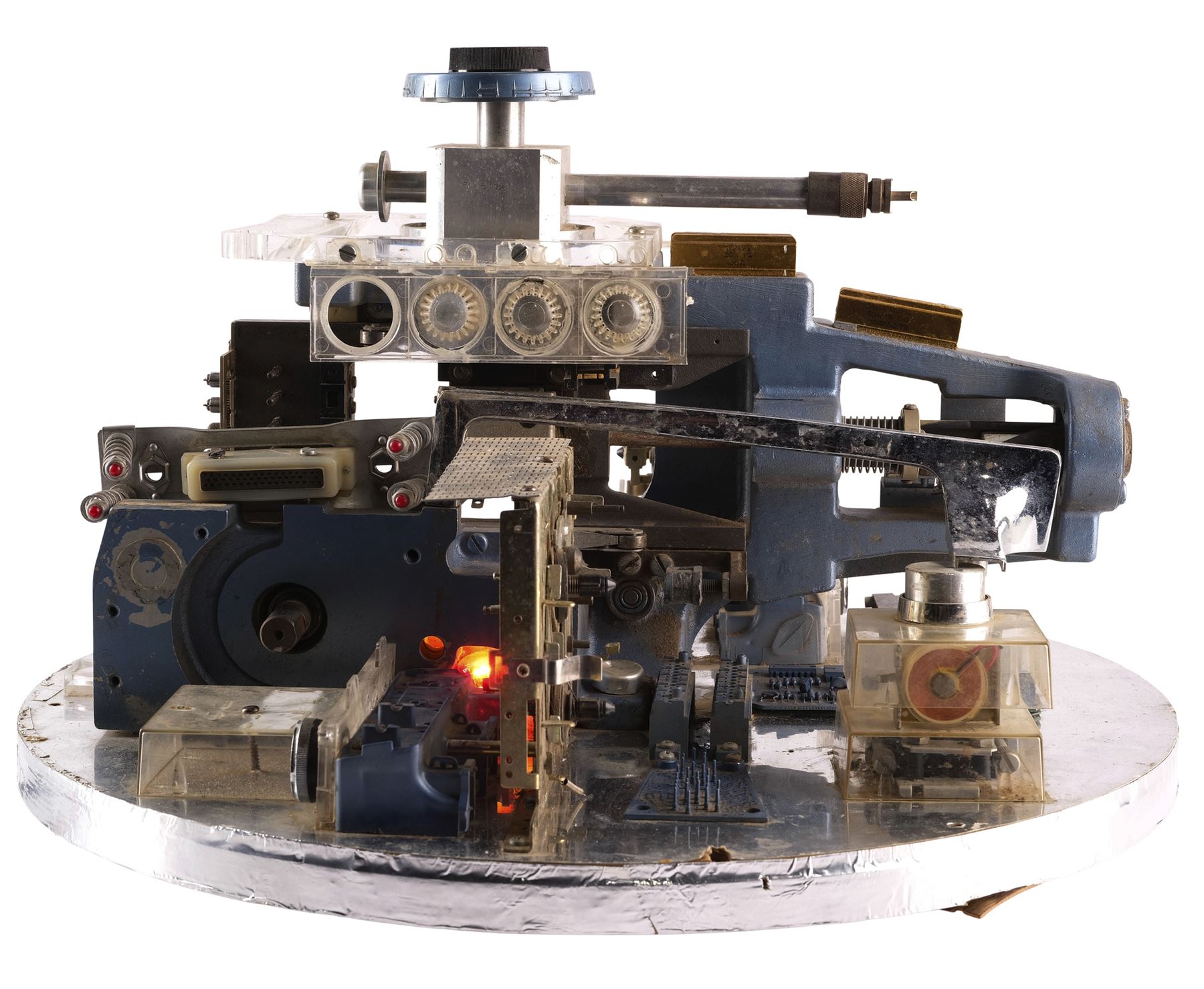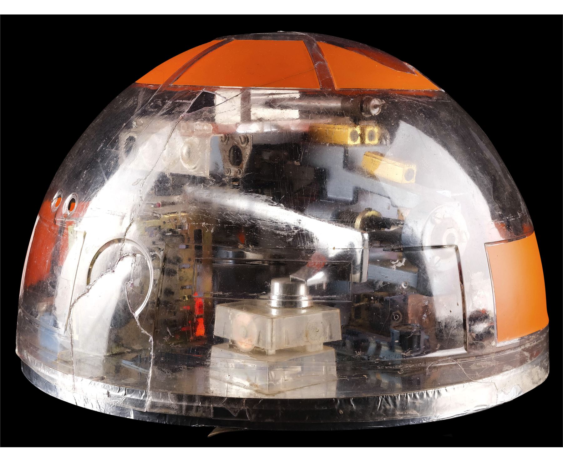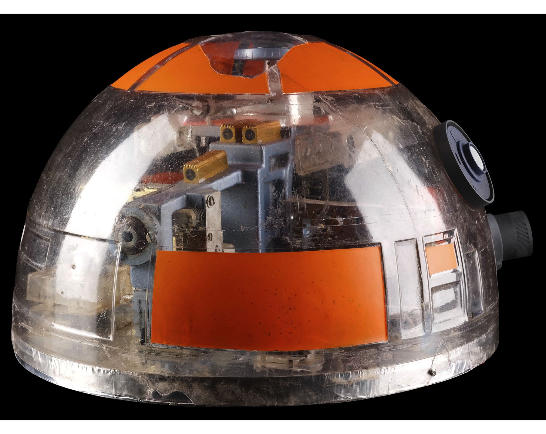 STAR WARS: THE EMPIRE STRIKES BACK (1980) - Light-Up R3-Series Astromech Droid Head - A light-up R3-series astromech droid head from Irvin Kershner's Star Wars: The Empire Strikes Back. R3-series droids were distinguished by their unique heads, which featured translucent domes with visible internal mechanics. This head was built specifically for The Empire Strikes Back and was one of two, or possibly three, R3-series droids created for the film, each having subtle variations in color scheme and detail. The droids appeared in sequence within the Rebel Alliance's Hoth base; at least one of the R3 droids built for Empire was also updated and used in Return of the Jedi, in Admiral Ackbar's (Tim Rose) briefing room.