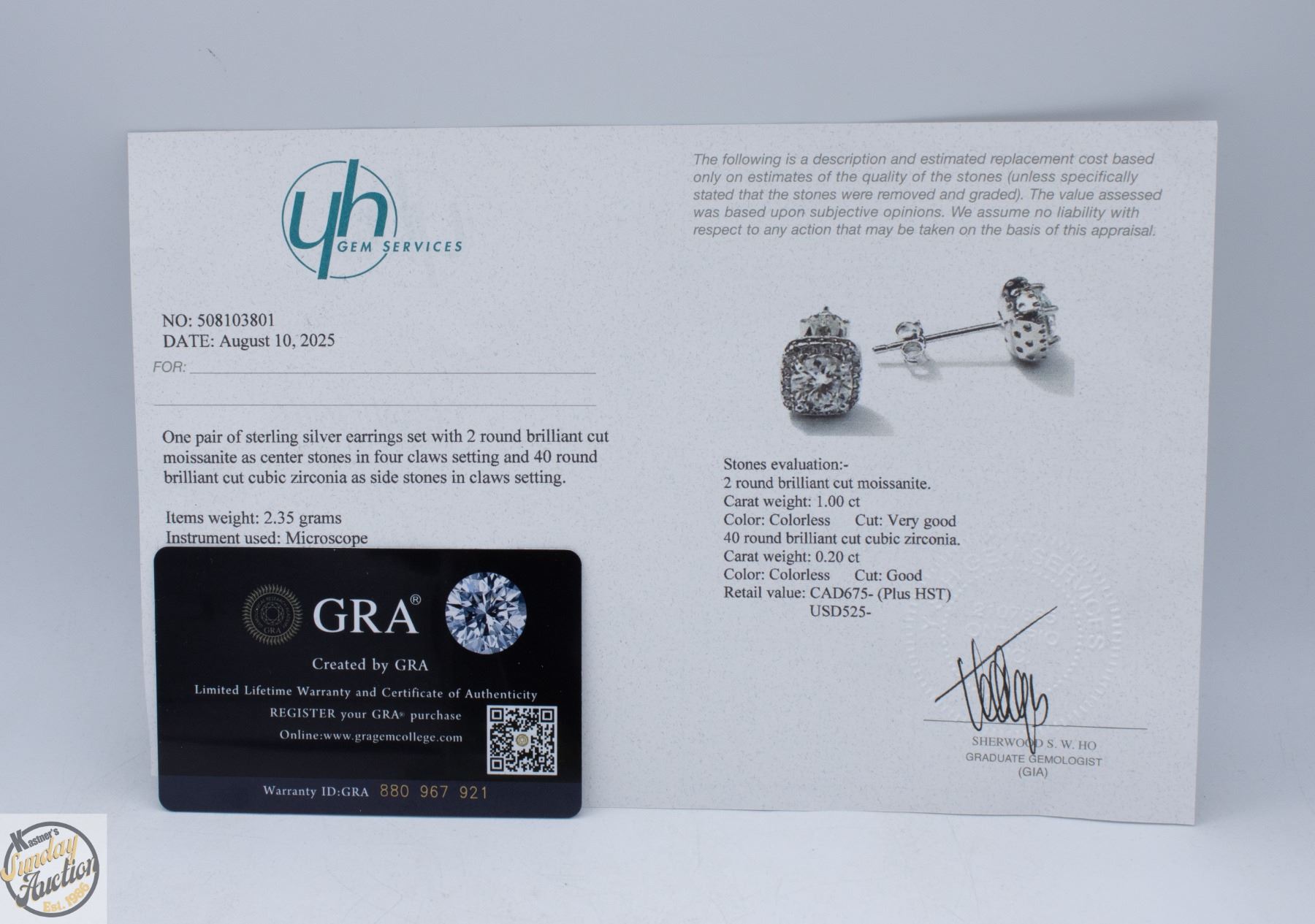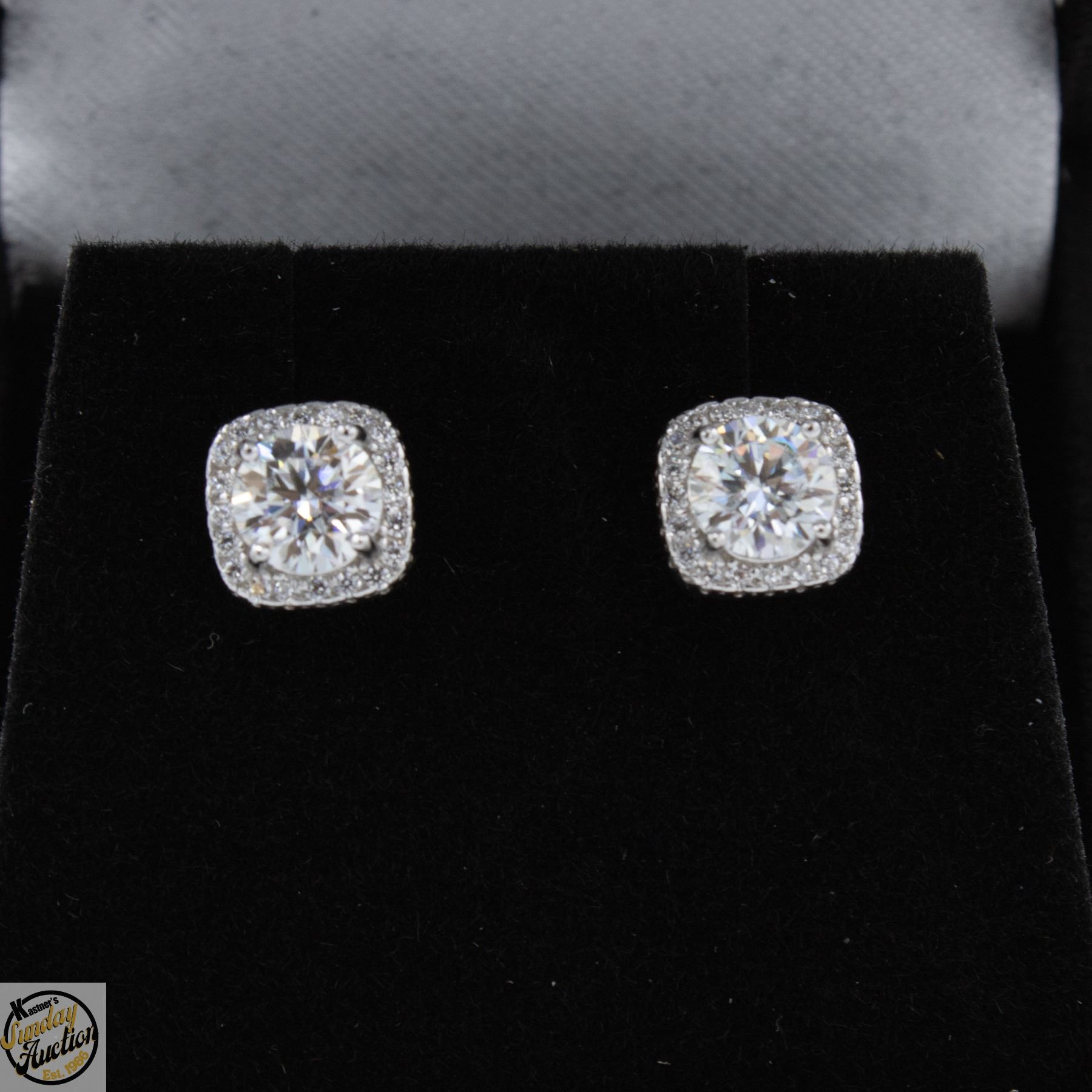 BRILLIANT CUT MOISSANITE STONE VVS D COLOR WITH 40 ROUND BRILLIANT CUT CUBIC ZIRCONIA SET IN ROUND HALO SET IN 925 SILVER EARRINGS RETAIL VALUE $675.00 **ALL ITEMS MUST BE REMOVED BY 5PM SATURDAY, APRIL 4TH 2026. ALL REMAINING ITEMS WILL BE SUBJECT TO A $6.00 PER DAY STORAGE CHARGE. ANY ITEMS REMAINING AFTER MONDAY, APRIL 27TH 2026 WILL BE CONSIDERED FORFEITED. NO REFUNDS WILL BE ISSUED FOR FORFEITED ITEMS. TO SCHEDULE A PICK UP APPOINTMENT CLICK HERE
