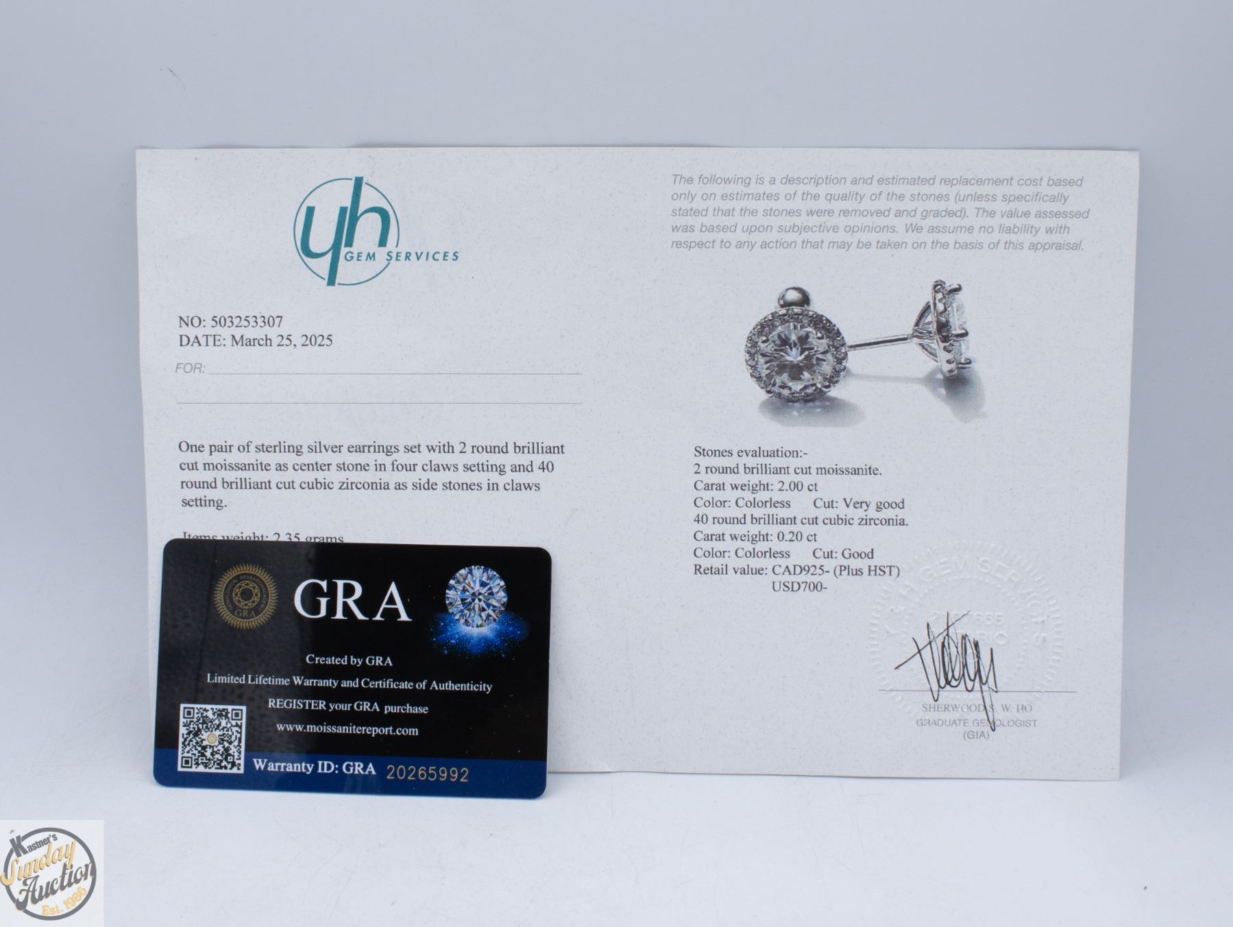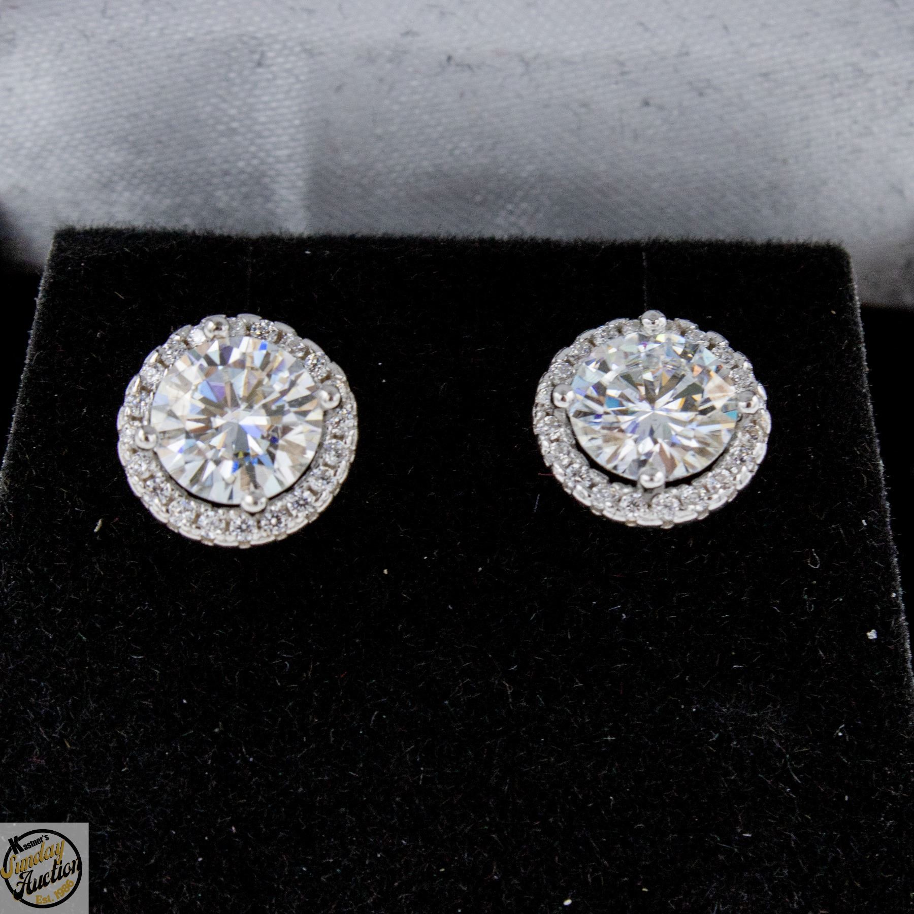 CUT MOISSANITE STONE VVS D COLOR WITH 40 ROUND BRILLIANT CUT CUBIC ZIRCONIA SET IN ROUND HALO SET IN 925 SILVER EARRINGS WITH SCREW BACKS RETAIL VALUE $925.00 **ALL ITEMS MUST BE REMOVED BY 5PM SATURDAY, APRIL 4TH 2026. ALL REMAINING ITEMS WILL BE SUBJECT TO A $6.00 PER DAY STORAGE CHARGE. ANY ITEMS REMAINING AFTER MONDAY, APRIL 27TH 2026 WILL BE CONSIDERED FORFEITED. NO REFUNDS WILL BE ISSUED FOR FORFEITED ITEMS. TO SCHEDULE A PICK UP APPOINTMENT CLICK HERE