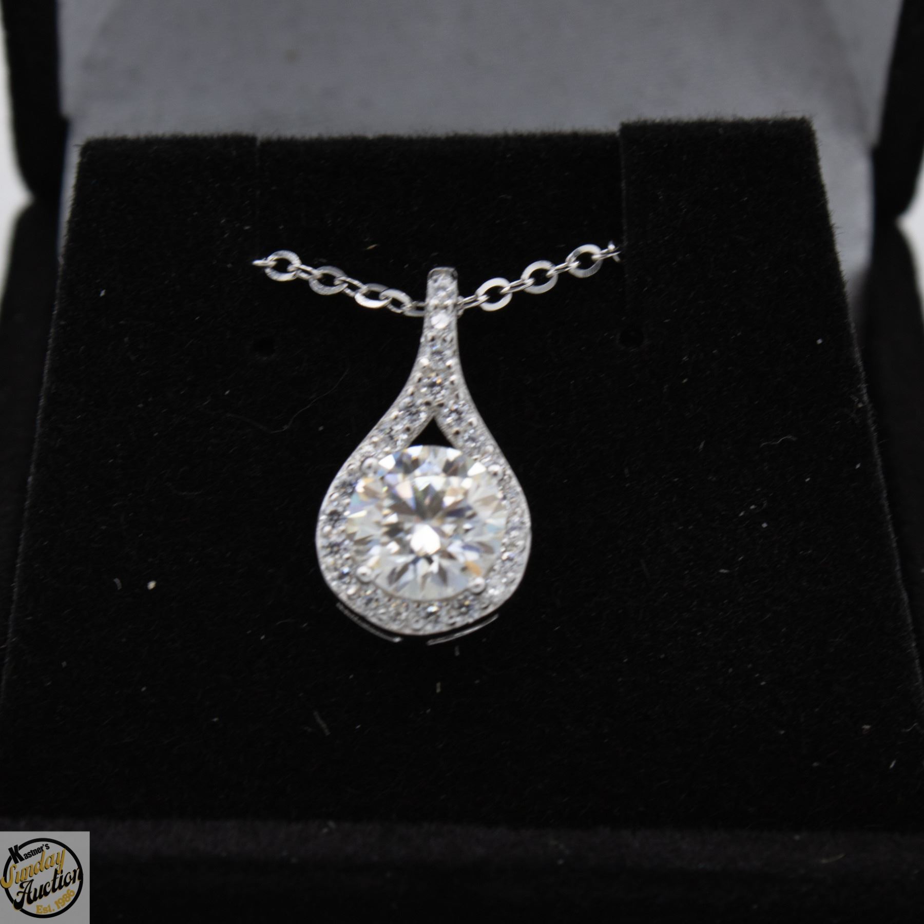 CUT MOISSANITE STONE VVS D COLOR WITH 24 ROUND BRILLIANT CUT CUBIC ZIRCONIA SET IN TEAR DROP HALO SET IN 925 SILVER PENDANT RETAIL VALUE $775.00 **ALL ITEMS MUST BE REMOVED BY 5PM SATURDAY, APRIL 4TH 2026. ALL REMAINING ITEMS WILL BE SUBJECT TO A $6.00 PER DAY STORAGE CHARGE. ANY ITEMS REMAINING AFTER MONDAY, APRIL 27TH 2026 WILL BE CONSIDERED FORFEITED. NO REFUNDS WILL BE ISSUED FOR FORFEITED ITEMS. TO SCHEDULE A PICK UP APPOINTMENT CLICK HERE