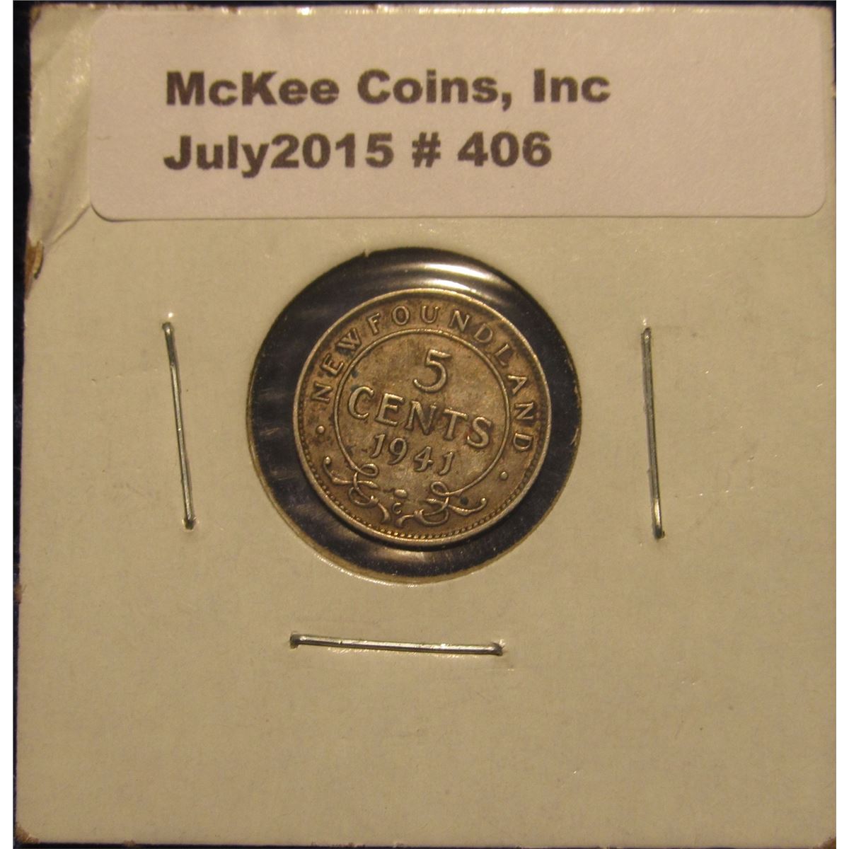 406. 1941 C Newfoundland, Canada Five Cent Silver. VF 20.