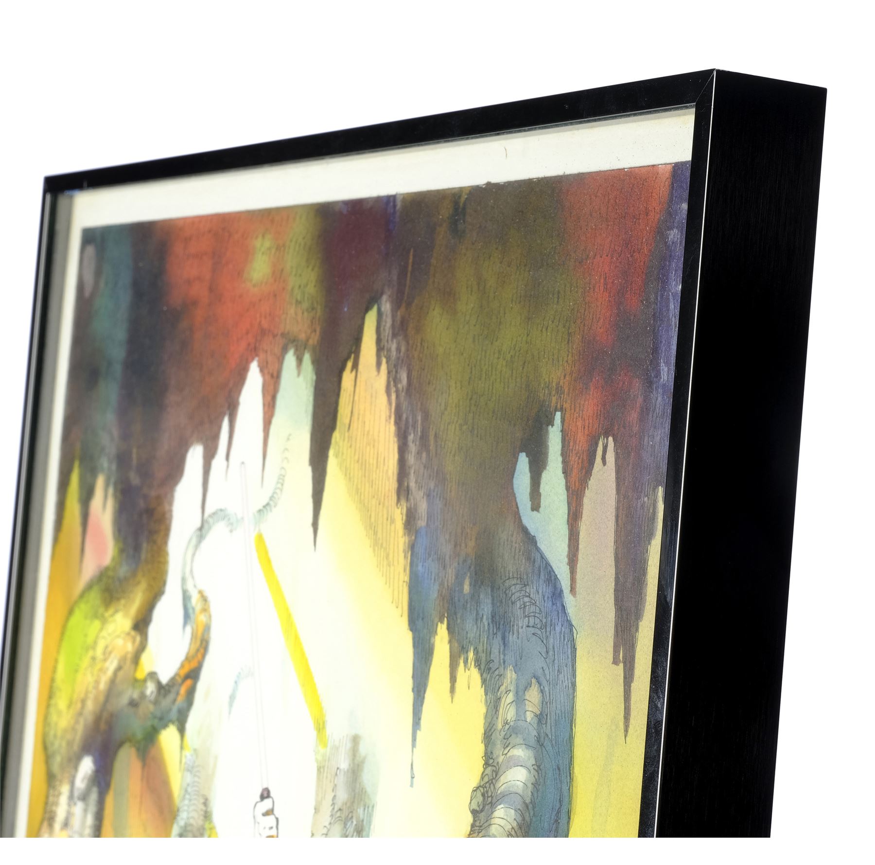 This sketch comes from the personal collection of William Plumb. Originating from the artist Vallejo, this sketch is rendered in black ink with watercolor washes. It features Luke and Yoda in the swamps of Dagobah. Also present is Vallejo's signature on the bottom right side, along with a copyright for 1980. This artwork comes mounted behind plexiglass in a custom frame. This lot exhibits scuffing on the frame and minor discoloration on the border of the sketch. Dimensions: 15.25" x 20.25" x 0.25" (38.75 cm x 51.5 cm x 0.25 cm)