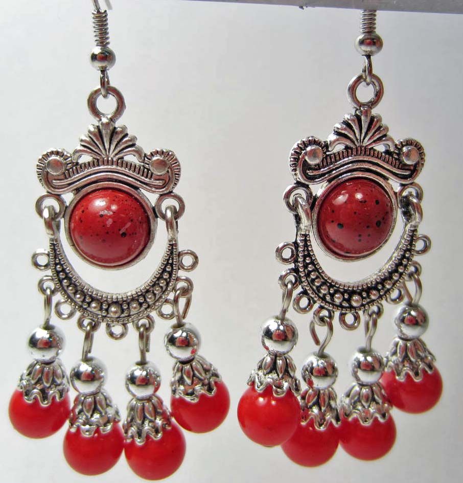 4082 - TIBET SILVER ROUND RED JADE EARRINGS