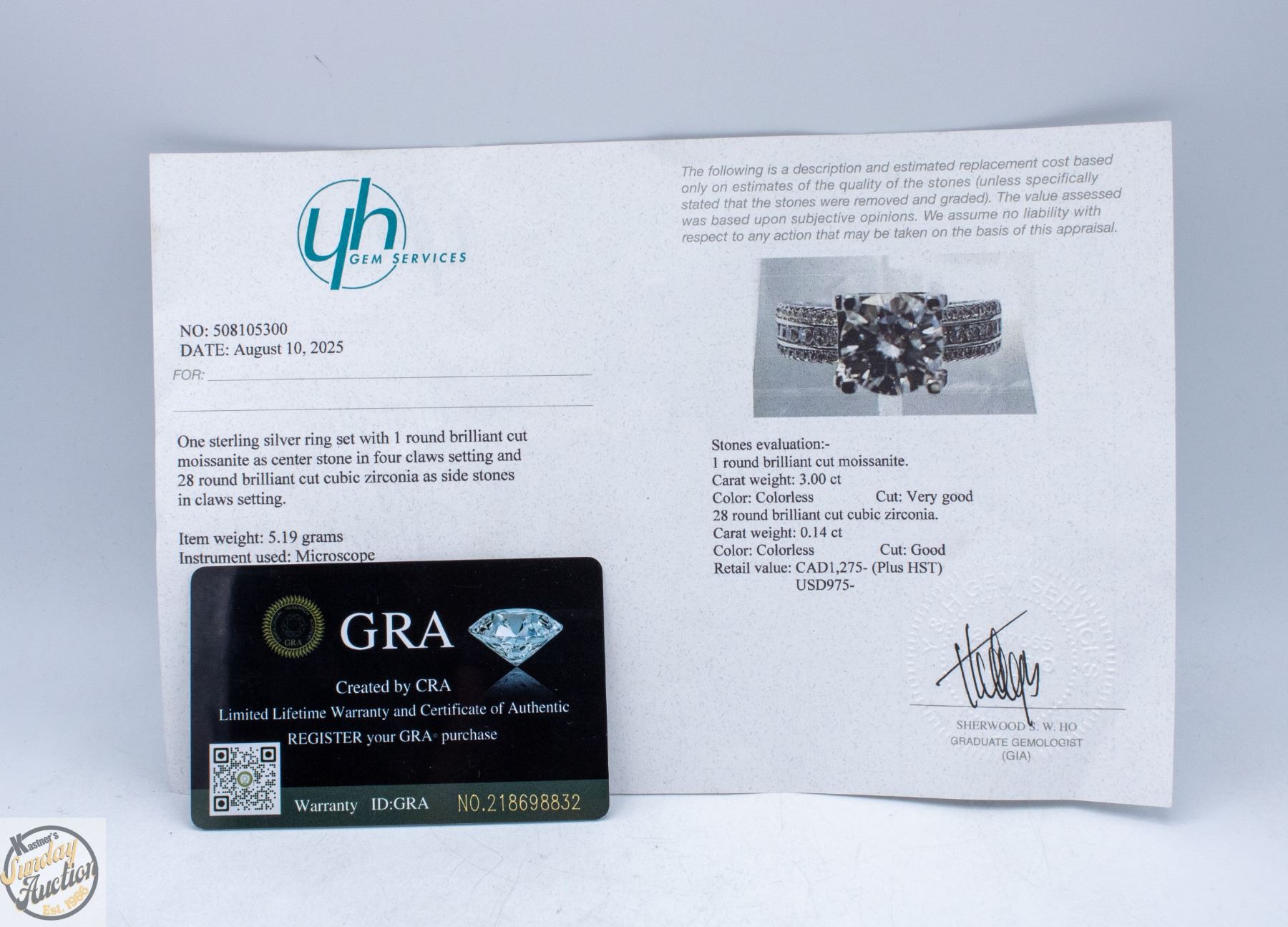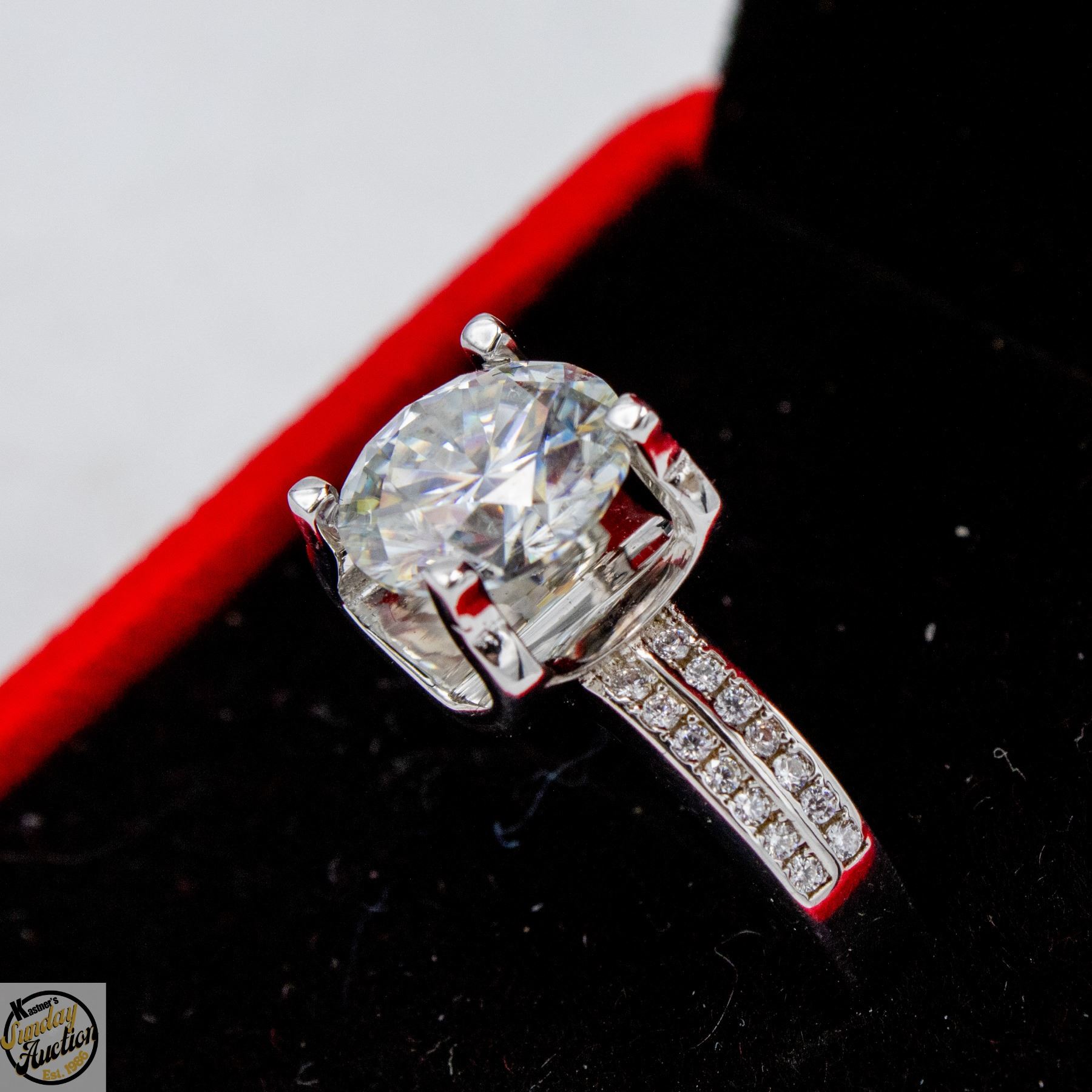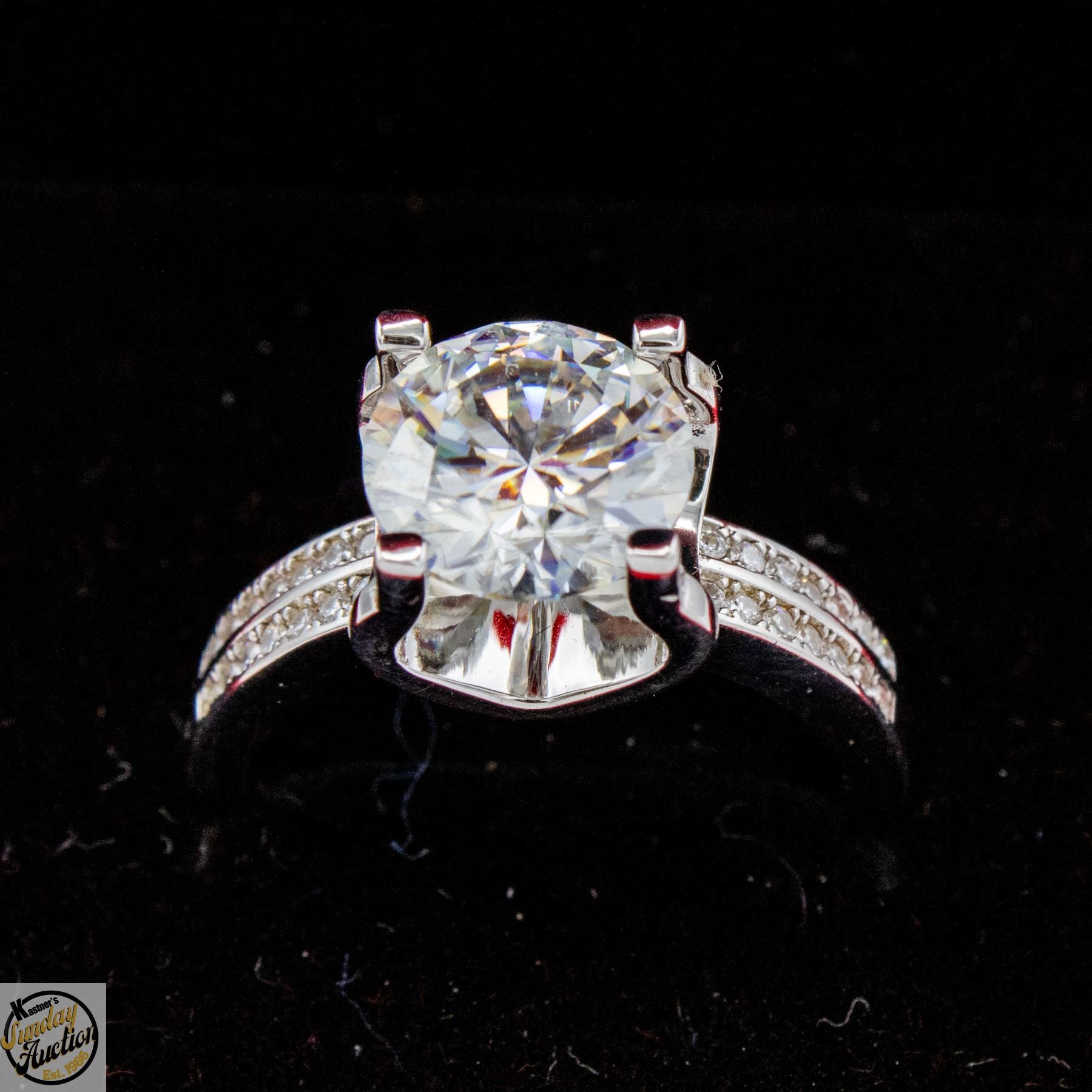 MOISSANITE STONE VVS D COLOR WITH 28 ROUND BRILLIANT CUT CUBIC ZIRCONIA SET IN 925 SILVER RING SIZE 7 RETAIL VALUE $1,275.00 **ALL ITEMS MUST BE REMOVED BY 5PM SATURDAY, APRIL 11TH 2026. ALL REMAINING ITEMS WILL BE SUBJECT TO A $6.00 PER DAY STORAGE CHARGE. ANY ITEMS REMAINING AFTER MONDAY, APRIL 27TH 2026 WILL BE CONSIDERED FORFEITED. NO REFUNDS WILL BE ISSUED FOR FORFEITED ITEMS. TO SCHEDULE A PICK UP APPOINTMENT CLICK HERE
