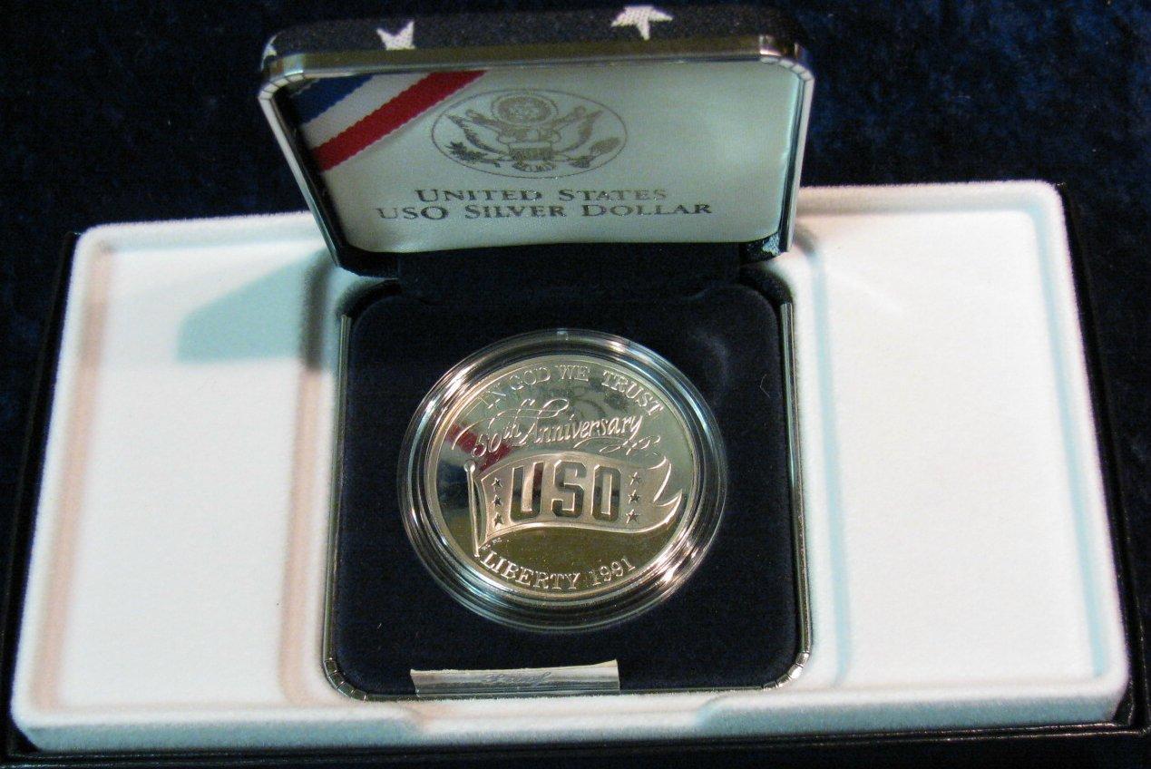 409. 1991S USO Commemorative Silver Dollar. Proof Original as Issued.