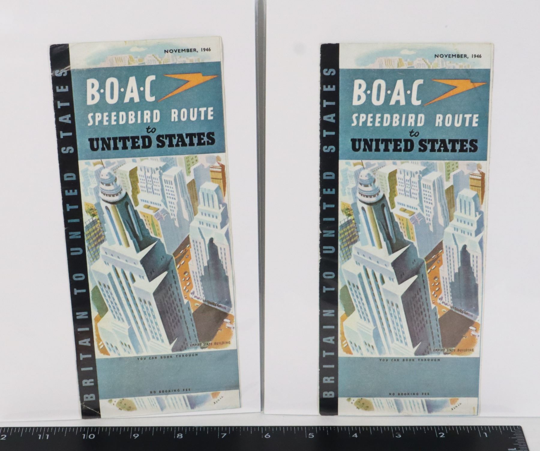 BRITAIN TO USA BOAC SPEEDBIRD ROUTE TO UNITED STATES FEATURING EMPIRE STATE BUILDING DESIGN